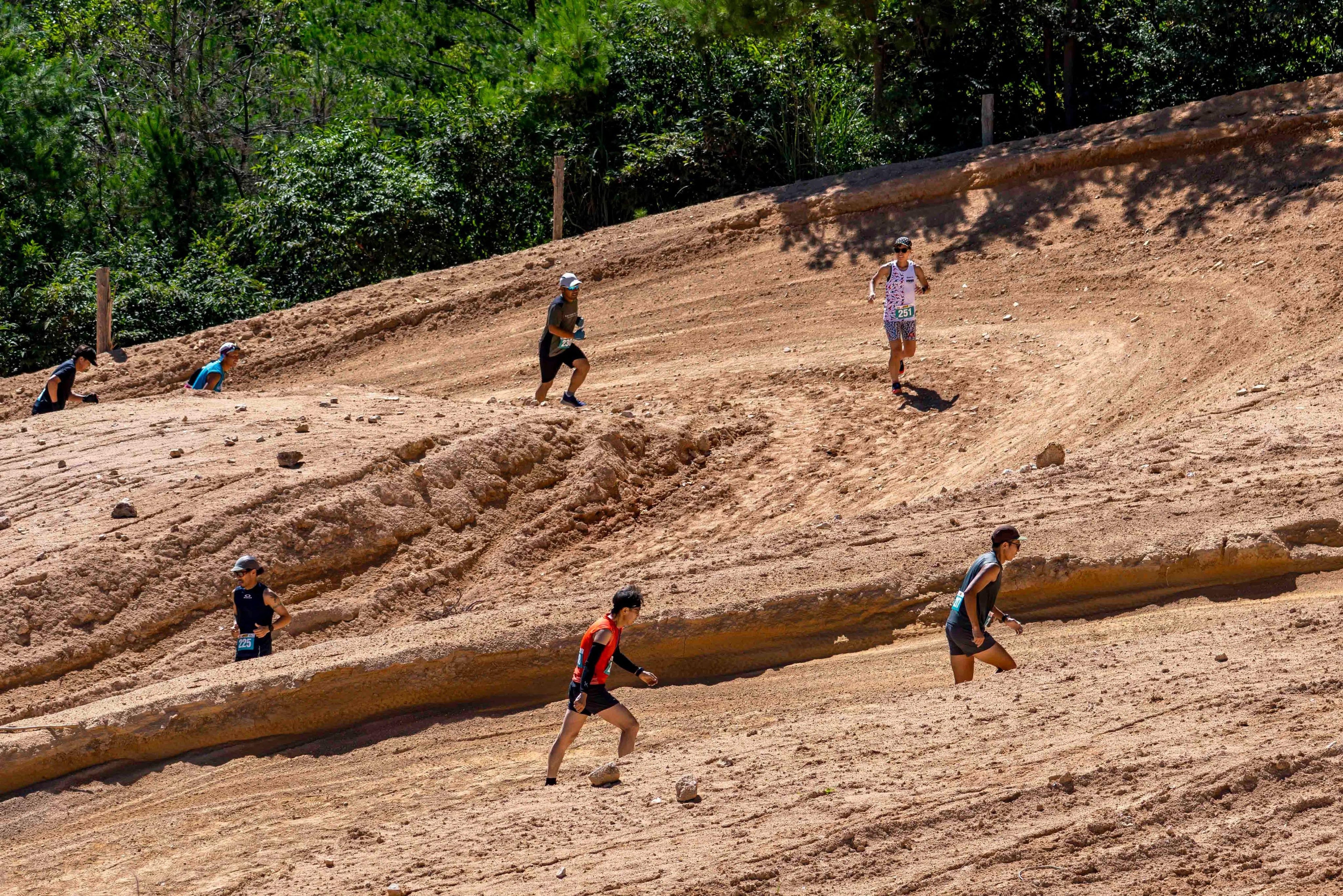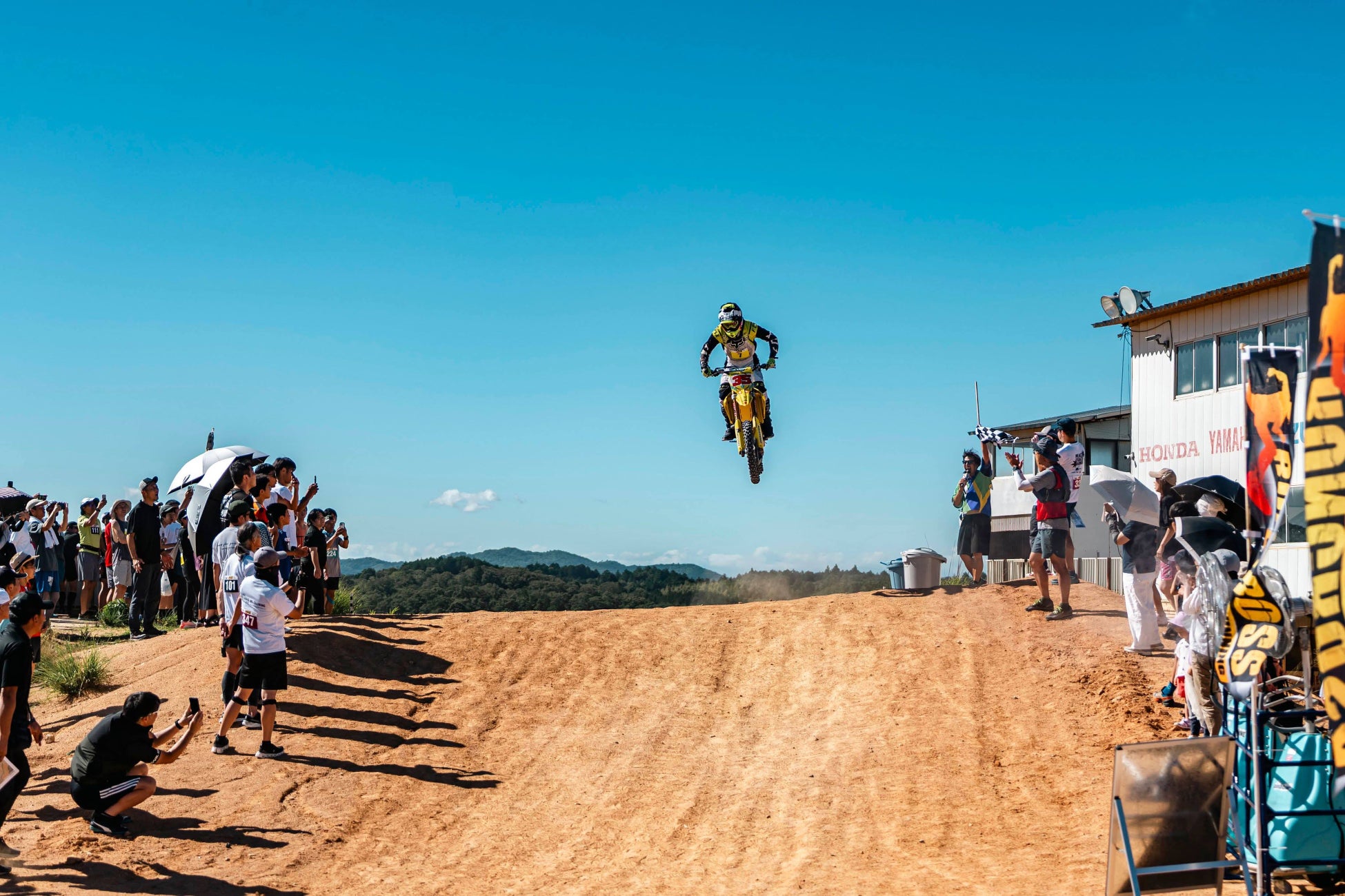 コースには深い砂地のダートや急勾配のジャンプ台、鋭くえぐられたコーナーなど、モトクロスならではの地形が連続します。舗装されたロードとは異なる走りごたえがあり、通常のランニング大会では味わえない体験ができます。