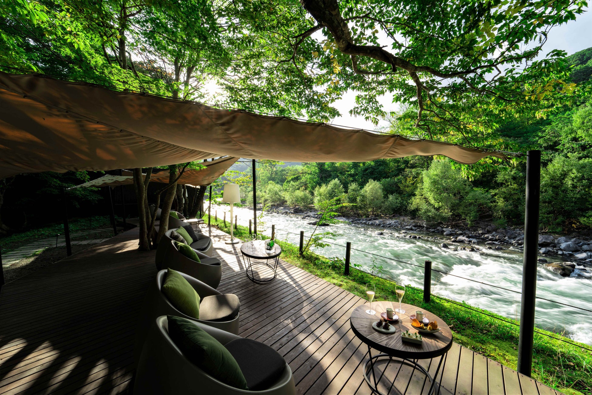 渓流の瀬音が響くテラス