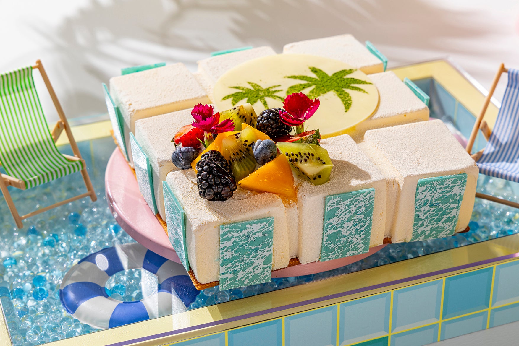ビタミンたっぷりのレモンをはじめ、メロンやマンゴー、マスカットなどのフルーツをふんだんに使用したスイーツは、ビーチに欠かせないパラソルや浮き輪、サーフボードをモチーフにした心弾むラインアップ。20種類のスイーツは、華やかなホールサイズでご用意するプレゼンテーションケーキに加え、お皿に美しく盛り付けられるスモールポーションでもご提供します。お好きなスイーツを少しずつ、気分のままに組み合わせながら、自分だけの“夏の一皿”をお楽しみいただけます。