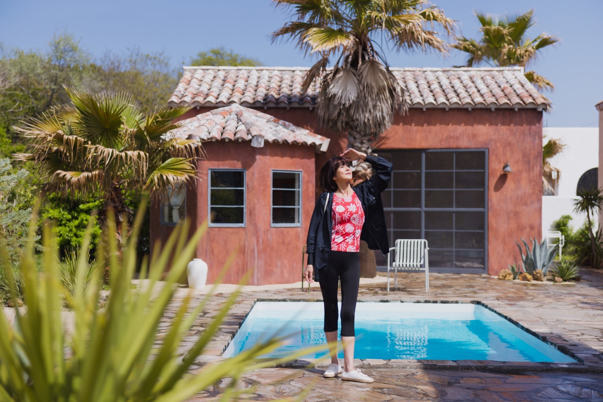 三浦りさ子さんとは、旅をイメージしたコンセプトの立案から柄の選定、細かなフィッティング確認まで協業。気になりがちな部位をさりげなくカバーするパターン設計にこだわり、アウターアイテムと組み合わせることで、体型カバーとコーディネイトのしやすさを両立しています。