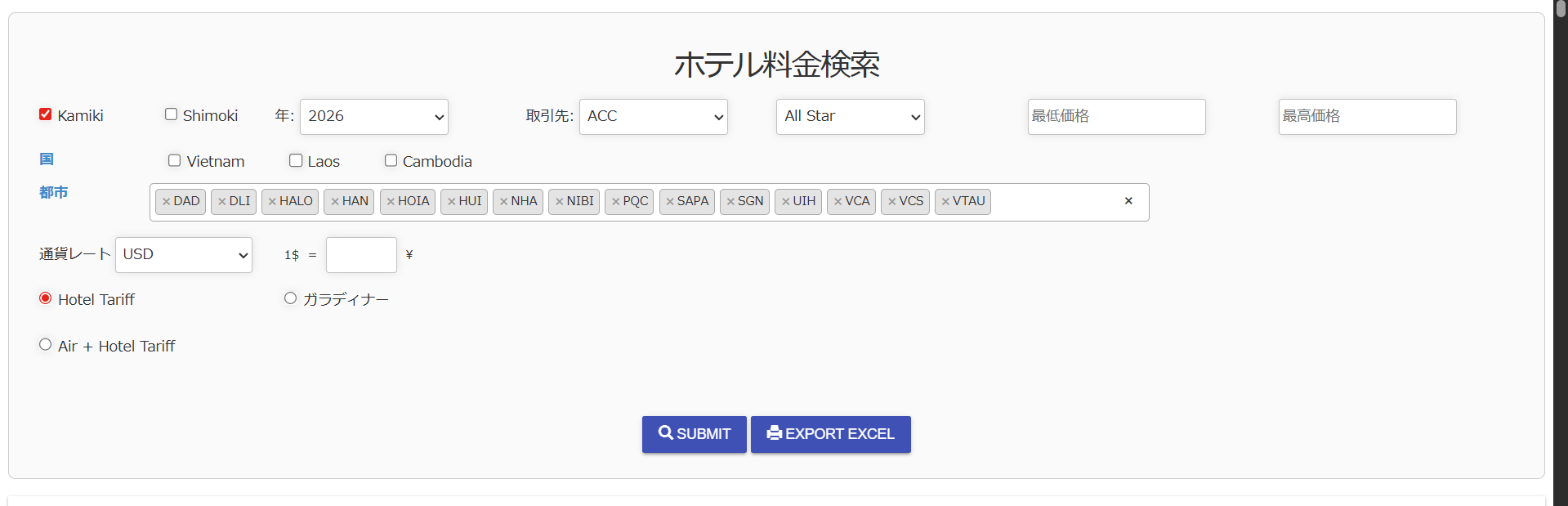 パートナー企業様の利便性向上のため、ベトナム・カンボジア・ラオスの最新ランド料金を網羅した「WEBタリフ」を運用しております。
