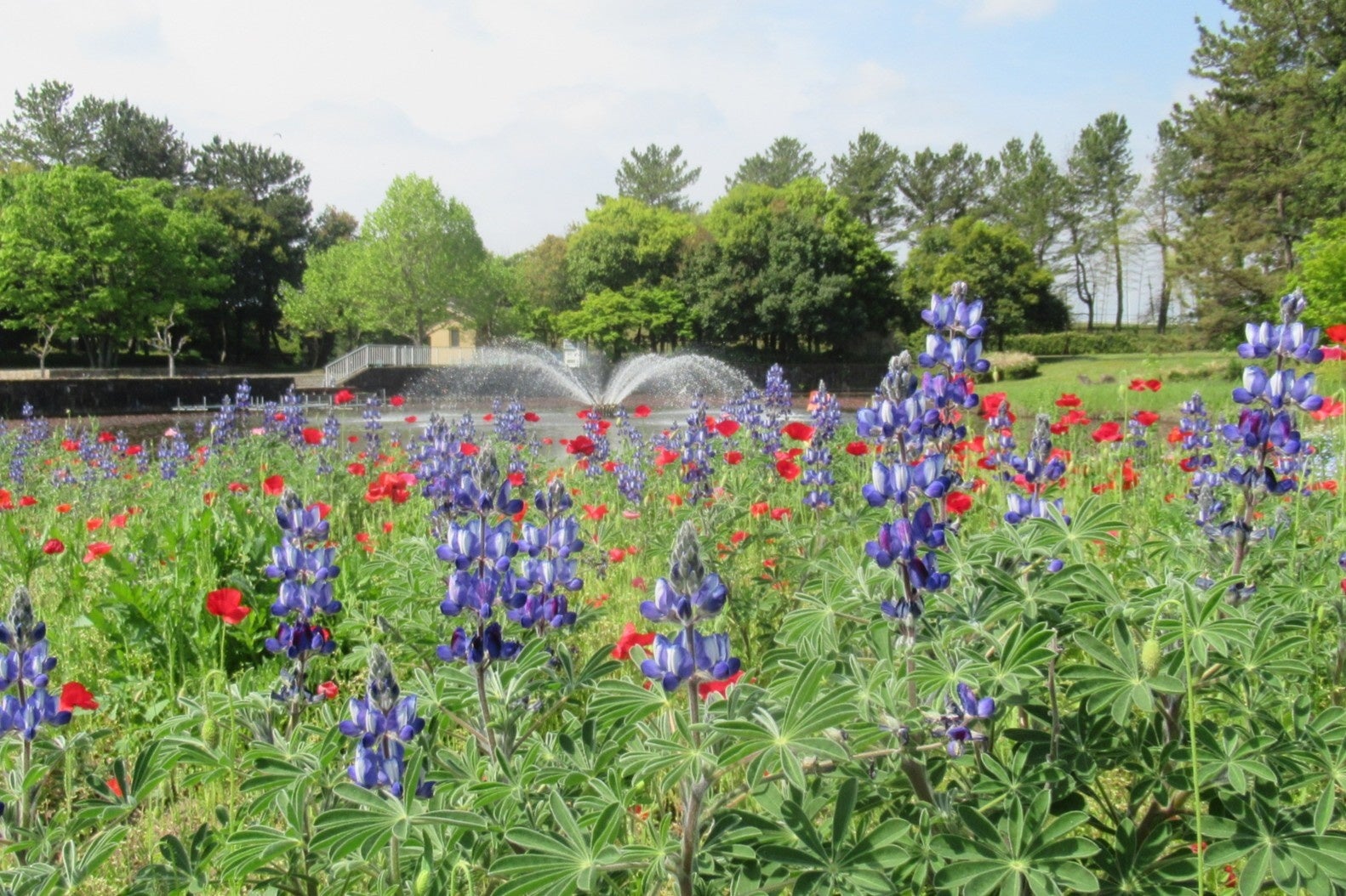 さわやかな水色のネモフィラ’インシグニスブルー’をはじめ、シャーレーポピー、カサバルピナスなど、春風に揺れる色とりどりの花々をお楽しみいただけます。