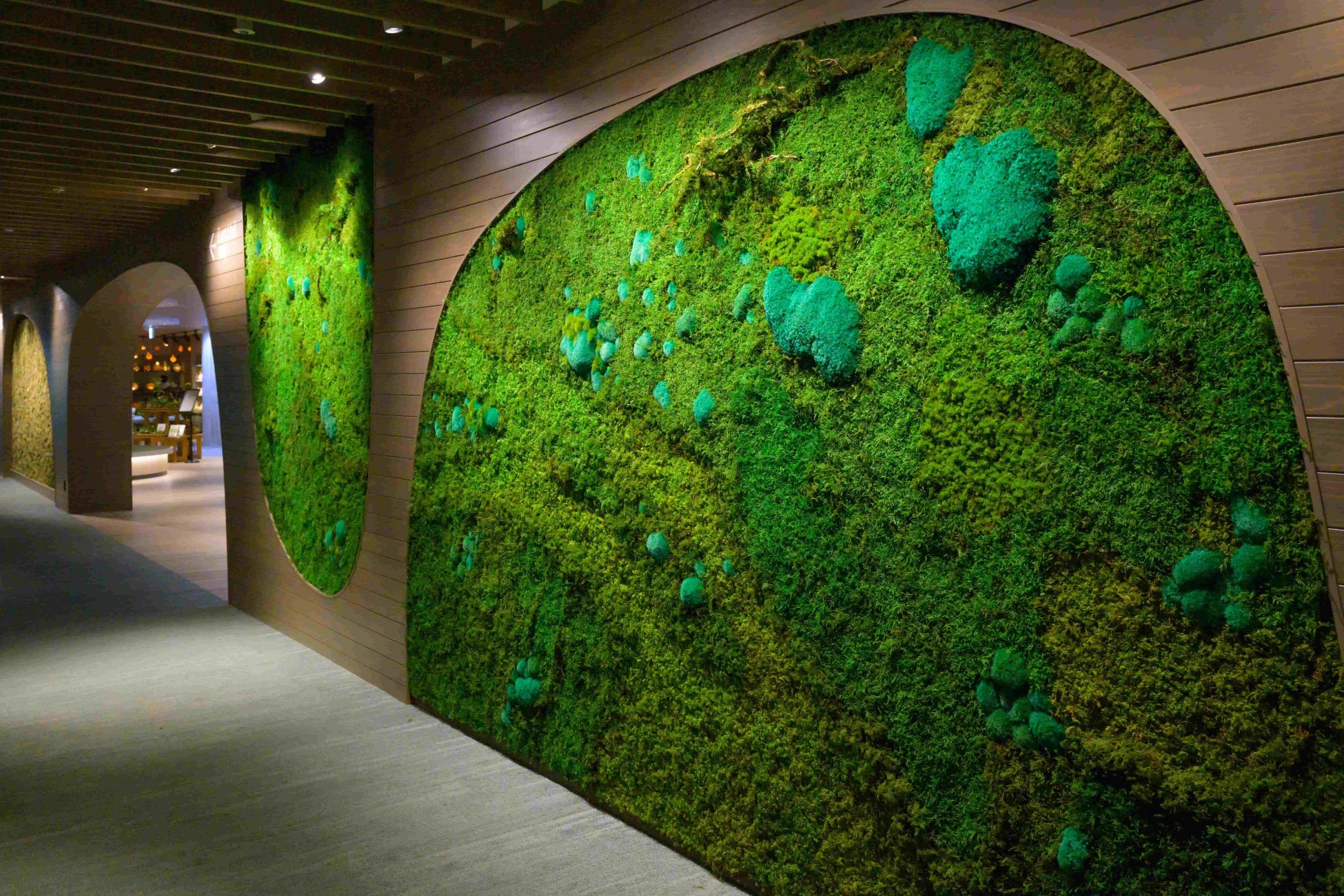 さらに苔を楽しめる館内のパブリックエリア