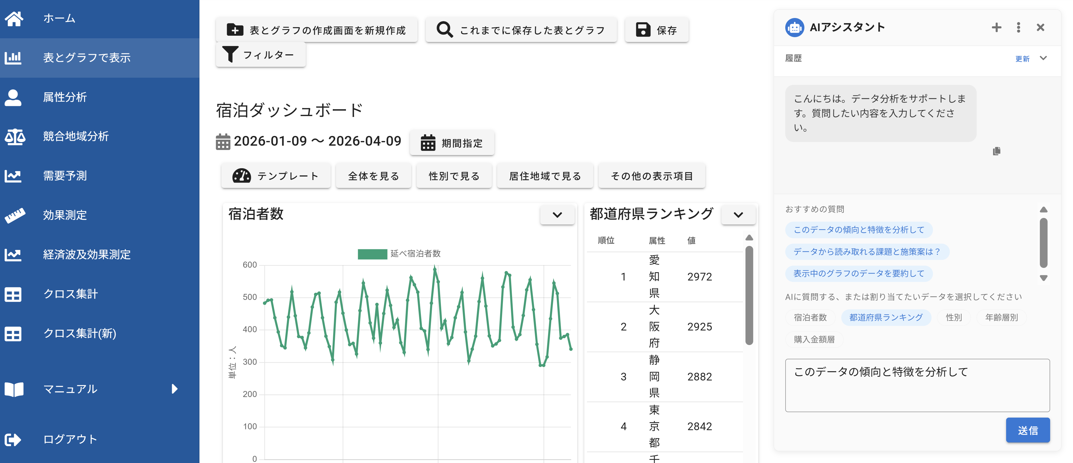 DMO・自治体観光担当者向けダッシュボードデータ分析・施策立案をサポートする対話型AI機能