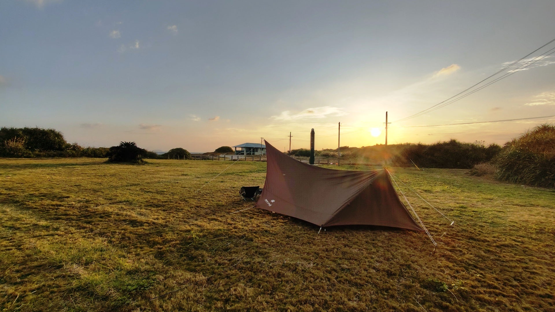 宝島キャンプ場の朝(同行した職員が撮影、テントは私物です)