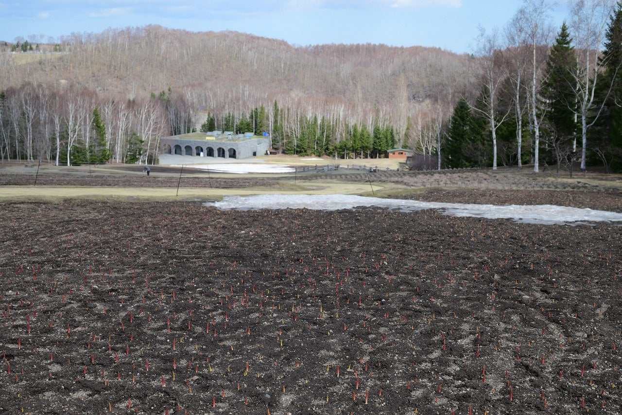 カントリーガーデンの一部に残雪がありますが、融雪が進んでいる場所では、チューリップの芽が出ている様子を見ることができます。