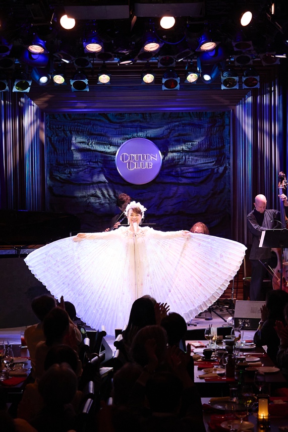 この日のコンサートはジャズテイスト。1930年に作られ誰しもが一度は耳にしたことのある「On The Sunny Side Of The Street」から始まった。この曲は明るく人々に希望をもたらす名曲。取材の雰囲気同様にパッと照らしたオープニング。その後も「SIDE BY SIDE」など世界的な名曲のラインナップに加え、自身が1973年に発表した「花嫁の耳飾り」や誰しもが聴きたかった「魅せられて」も披露し、満席の期待に応えた。60周年イヤーのキックオフにふさわしい華やかなステージであった。