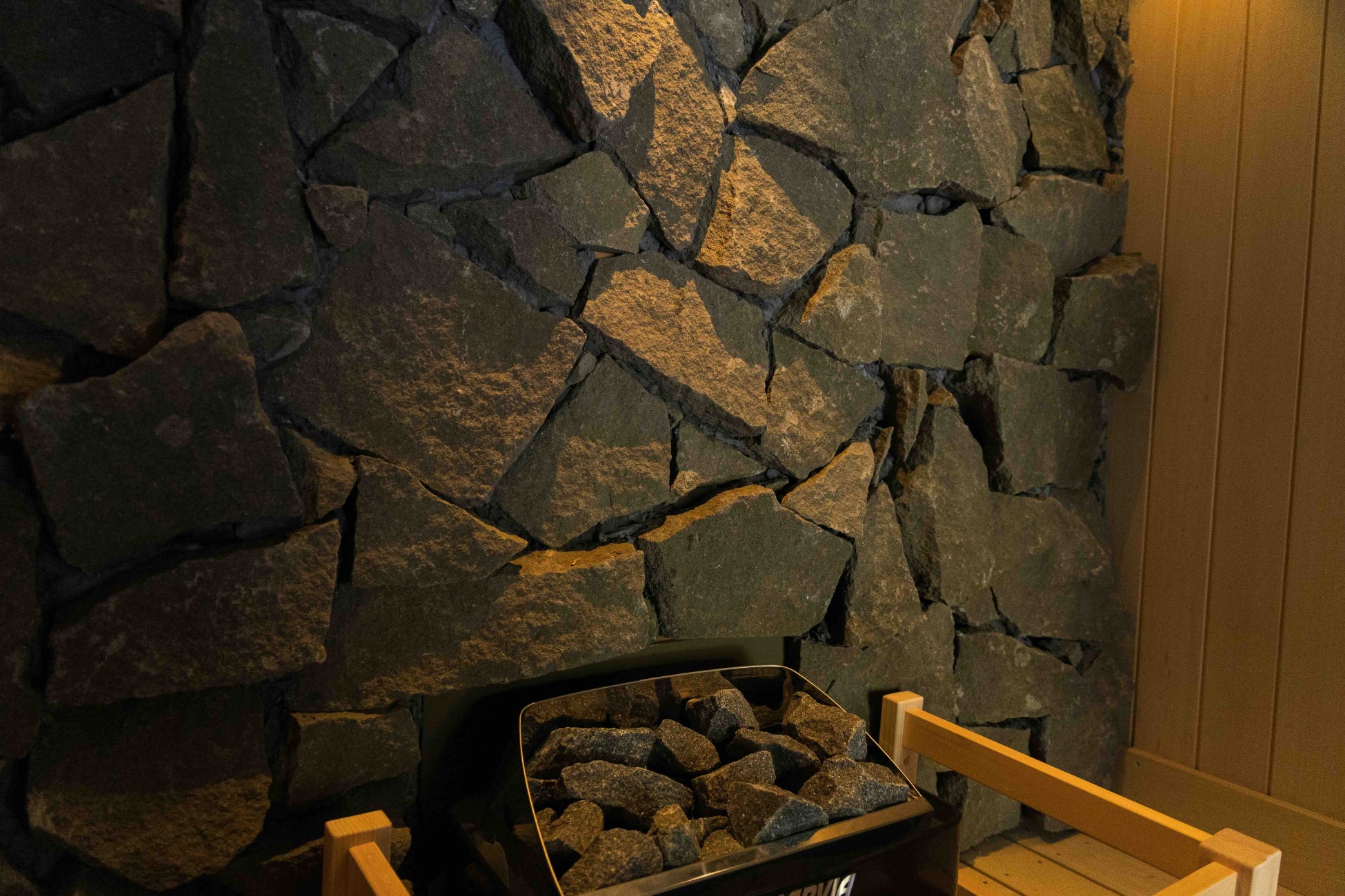 来待(きまち)地域で産出される「来待石」を壁面に設えた大森の湯オリジナルのサウナ。暑すぎず、心地よい温かさを感じるサウナ室で、セルフロウリュをお楽しみいただけます。