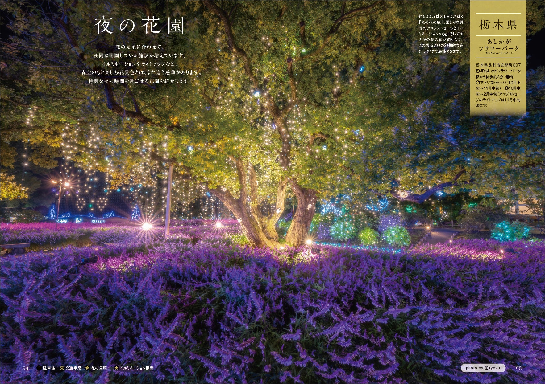 また、各施設の見どころポイントでは、おすすめの撮影時間や撮影スポット、花以外に楽しめる見どころやイベントなども紹介。現地をより深く楽しむためのヒントが詰まっています。