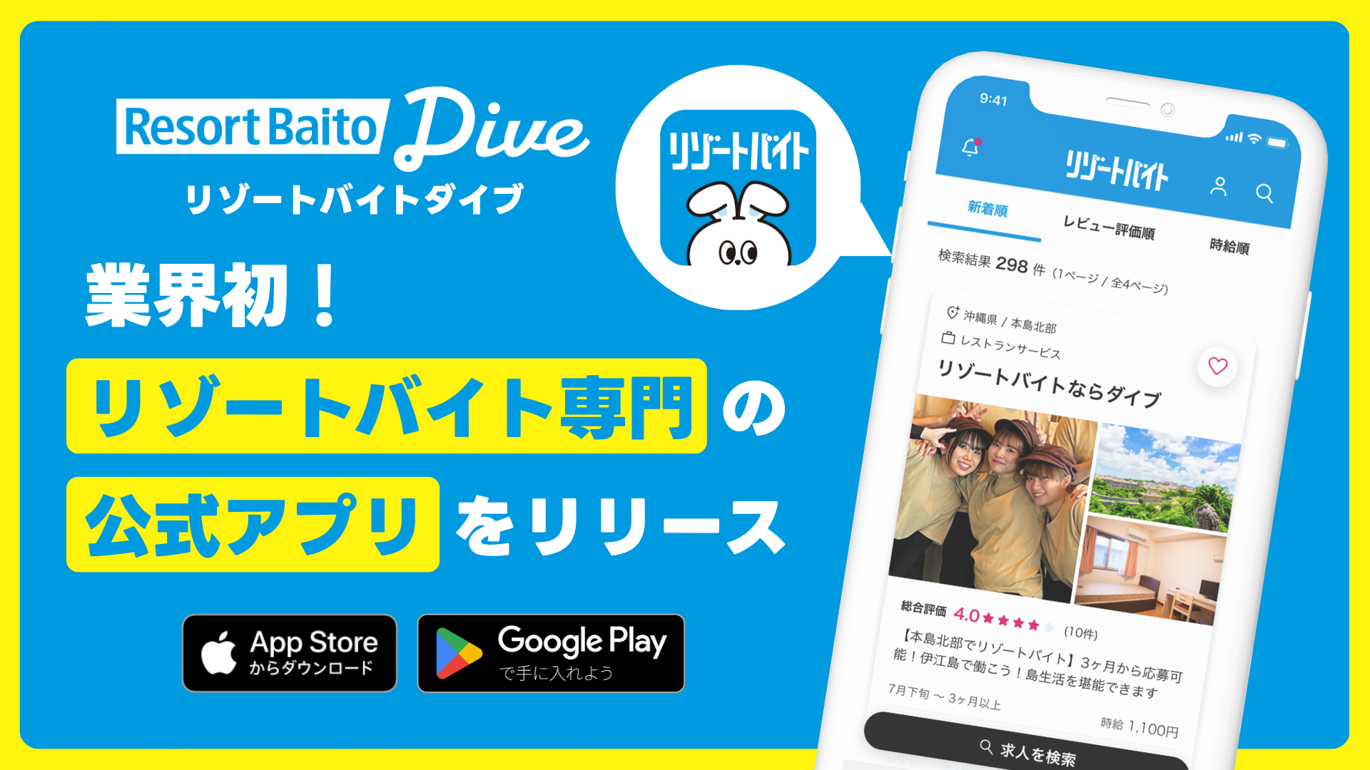 この度、リゾートバイトダイブは、業界初となるリゾートバイト専門の公式アプリ「公式リゾートバイトアプリ」を正式リリースいたしました。