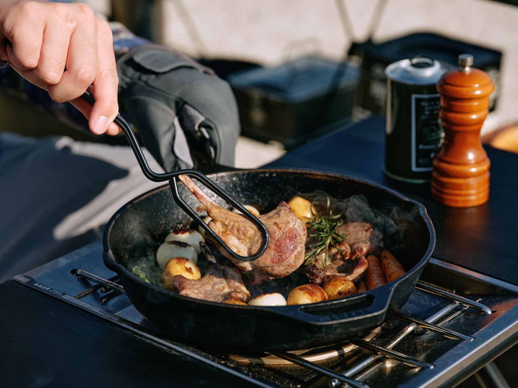 キャンプにおける調理シーンの使いやすさを追求し、「操作性」に着目して再設計したトングシリーズ。