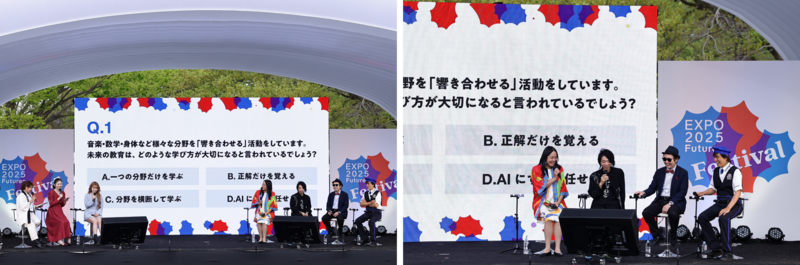 大阪・関西万博テーマ事業プロデューサーと大阪・関西万博スペシャルサポーターのゆうちゃみさん、ゆい小池さんらが登壇し、会場参加型のクイズ企画を行いました。