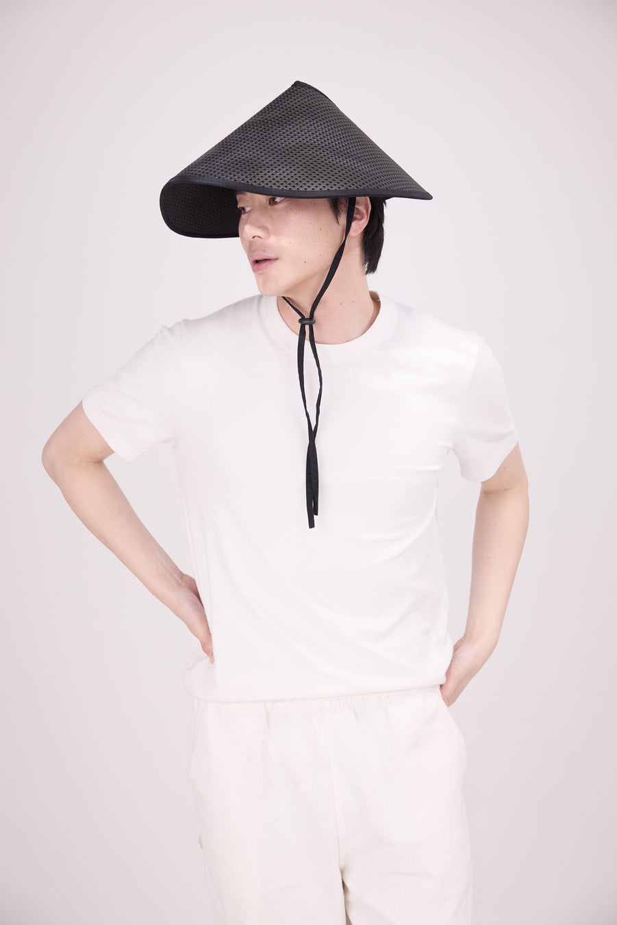 一体成型で使われることの多いEVAを生地として再構築し、軽量性、耐久性、保形性を実現。「バッグに求められるタフな機能性を帽子に落とし込んだらどうなるか?」という問いから、本プロジェクトはスタートしました。そこに、130年以上の歴史を持つ<Tokio hat>が呼応。本来、帽子用ではない難易度の高い異素材を、長年培われた木型設計と縫製技術によって、美しいシルエットを持つプロダクトへと仕立て上げました。