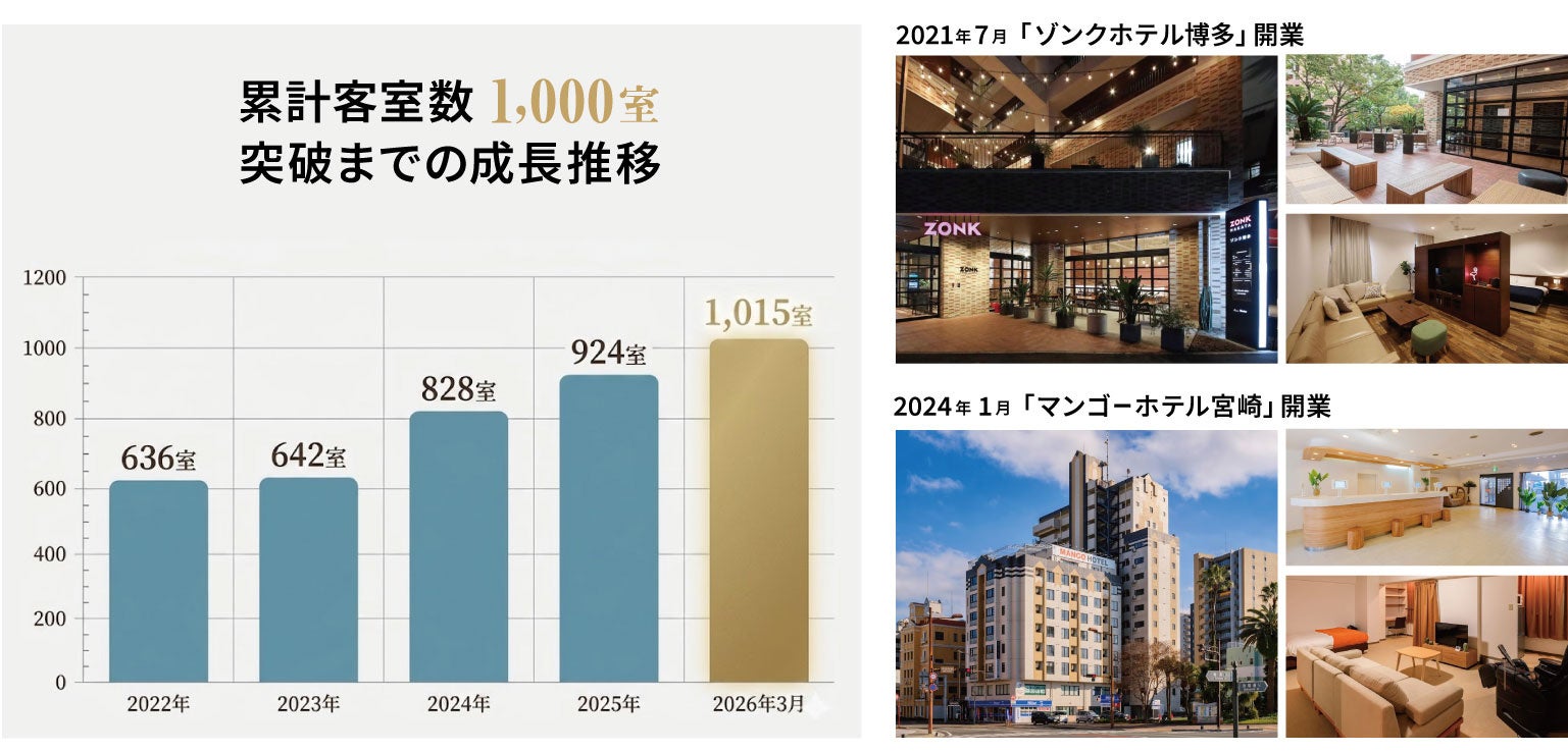 株式会社ホテリエ(所在地:福岡県福岡市、代表取締役:笹栗 泰典、以下:弊社)は、2026年3月時点において、管理および運営受託を行う累計客室数が1,000室を突破いたしました。