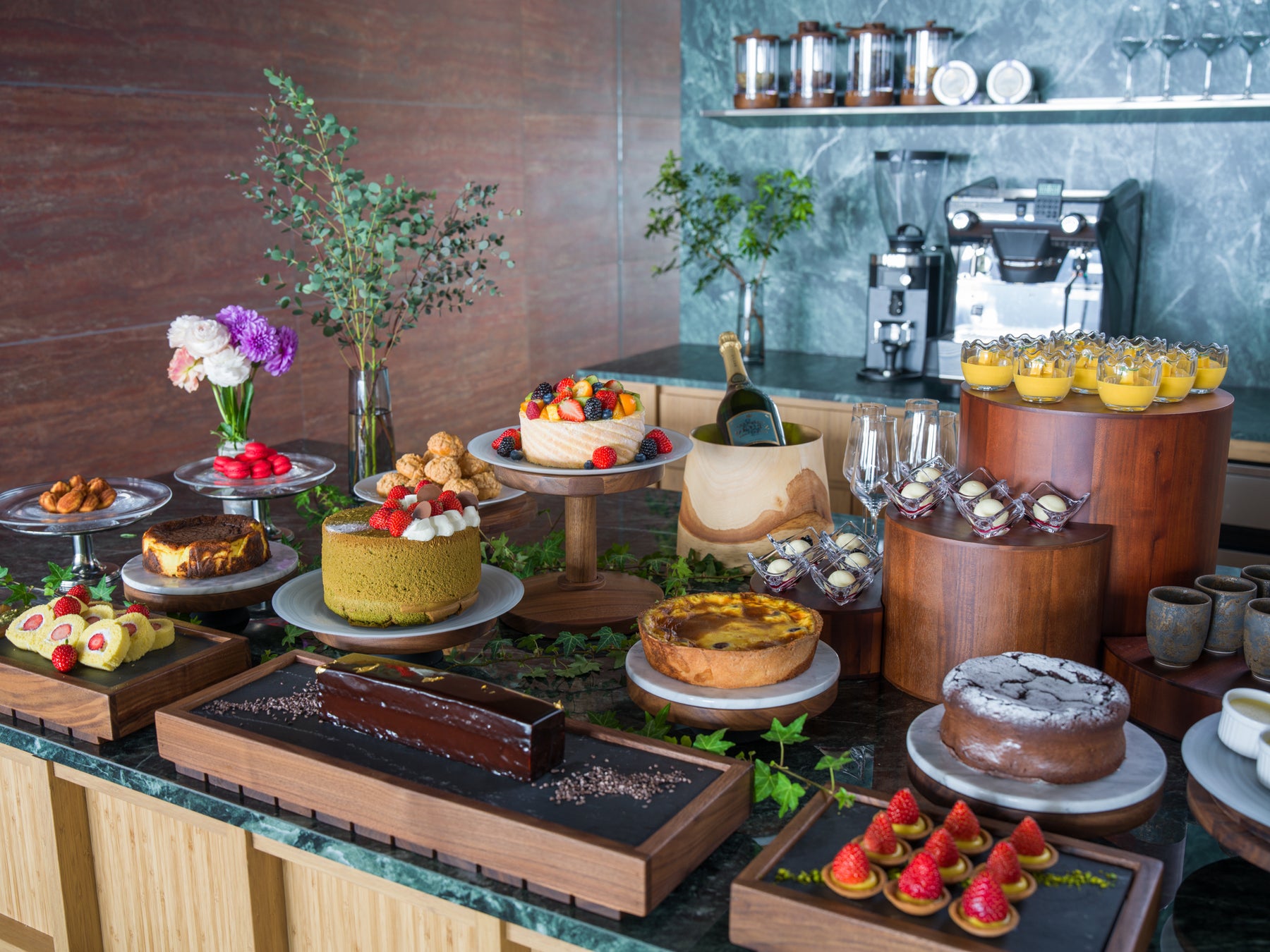 食後には、道産食材と季節のフルーツをふんだんに使用したデザートブッフェをご用意。濃厚なバスクチーズケーキや余市ウイスキーが香るアムールショコラ、旬の果実を使ったシャルロットやロールケーキ、てんさい糖のやさしい甘さが広がるプリンなど、バリエーション豊かなスイーツが並びます。さらに、ハスカップの酸味を活かしたムースやゼリーなども揃い、季節感あふれるラインナップに。絶景とともに、食の魅力を五感で味わう贅沢なひとときをお届けします。