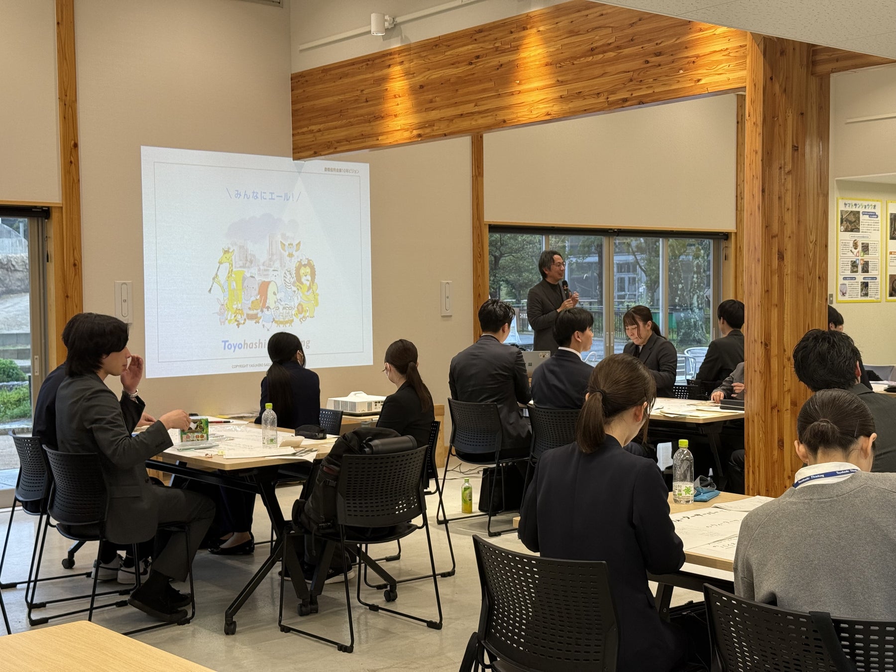 豊橋信用金庫(本店所在地:愛知県豊橋市、理事長:山口 進)は、豊橋総合動植物公園「のんほいパーク」(以下「のんほいパーク」という。)と協業し、動植物園でSDGsを学び、SDGsを切り口にビジネスアイデアを立案する社会人向け教育プログラム「地域共創フィールドワーク」を共同企画。新入職員研修のプログラムのひとつとして、令和8年4月10日(金)に実施し、令和8年度の新入職員34名が参加しました。