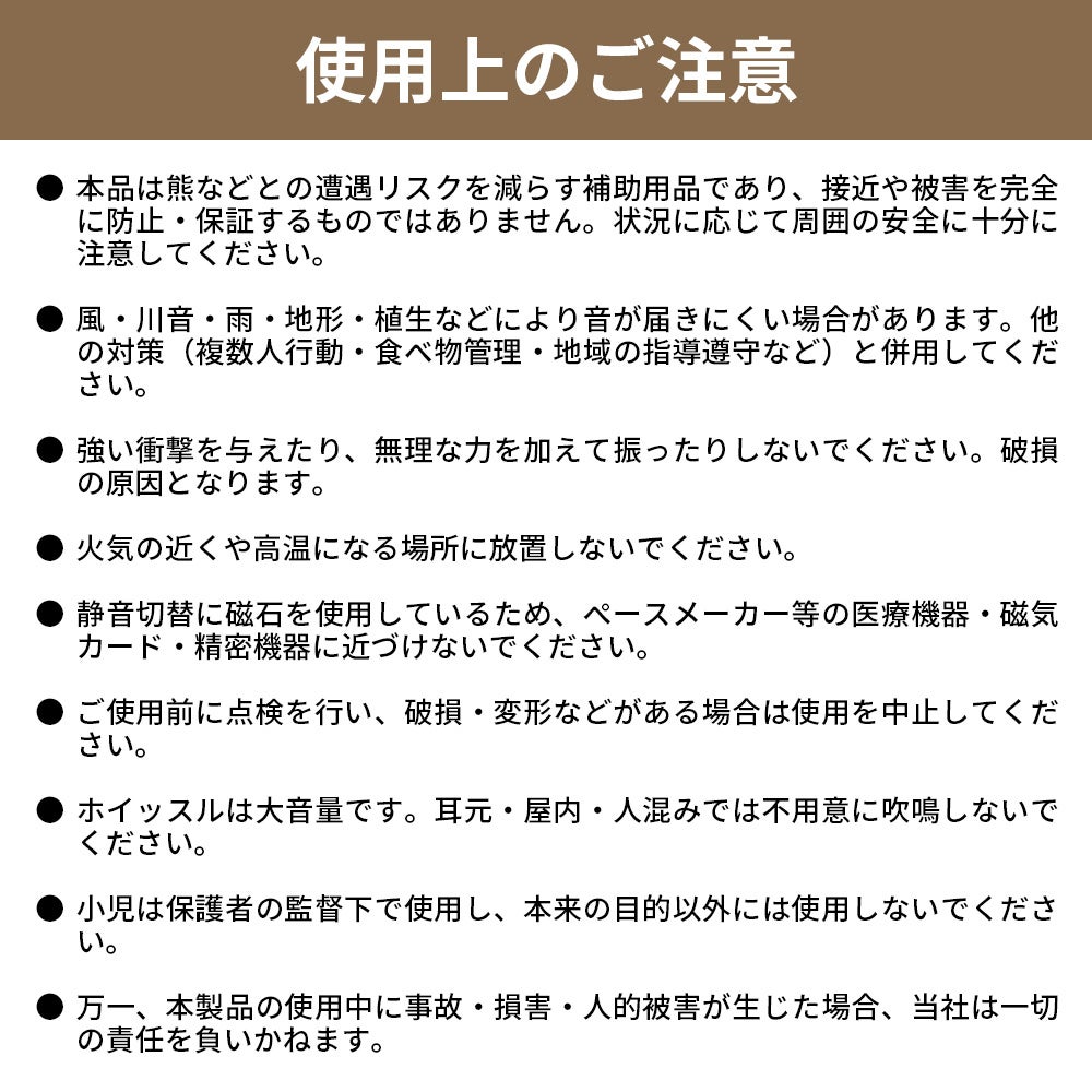 ※本品は熊などとの遭遇リスクを減らす補助用品であり、接近や被害を完全に防止・保証するものではありません。