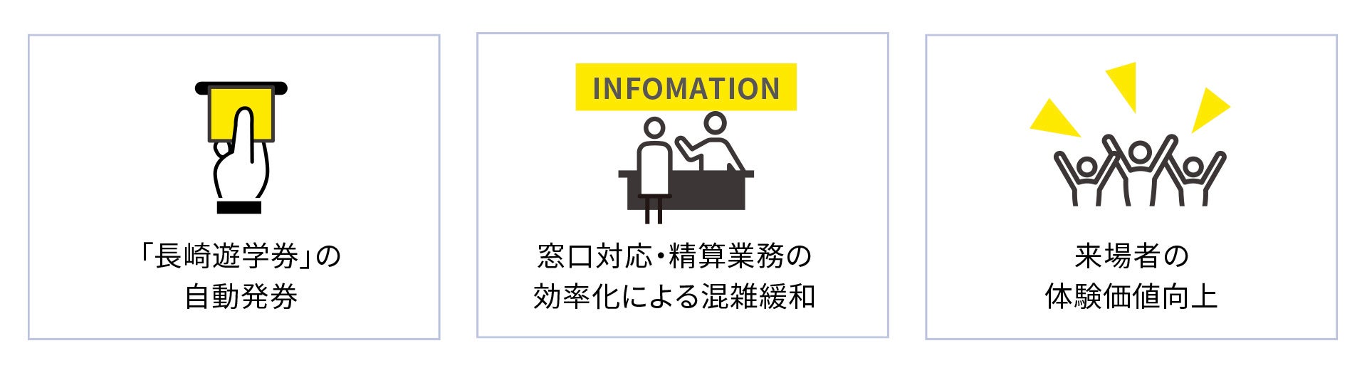 また、修学旅行などの学生団体の多くが使う「長崎遊学券」は、学生一人ひとりが割引クーポン券を有人窓口で提示し、窓口スタッフによるクーポン券の確認・専用チケットの発券・会計処理を行っていたため、年間来場者数48万人(長崎居留地歴まちグランドデザイン令和元年度による)を超える大浦天主堂では、受付業務の負担増加や混雑の一因となっていました。