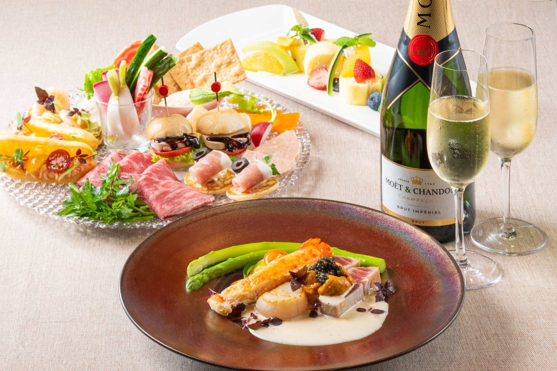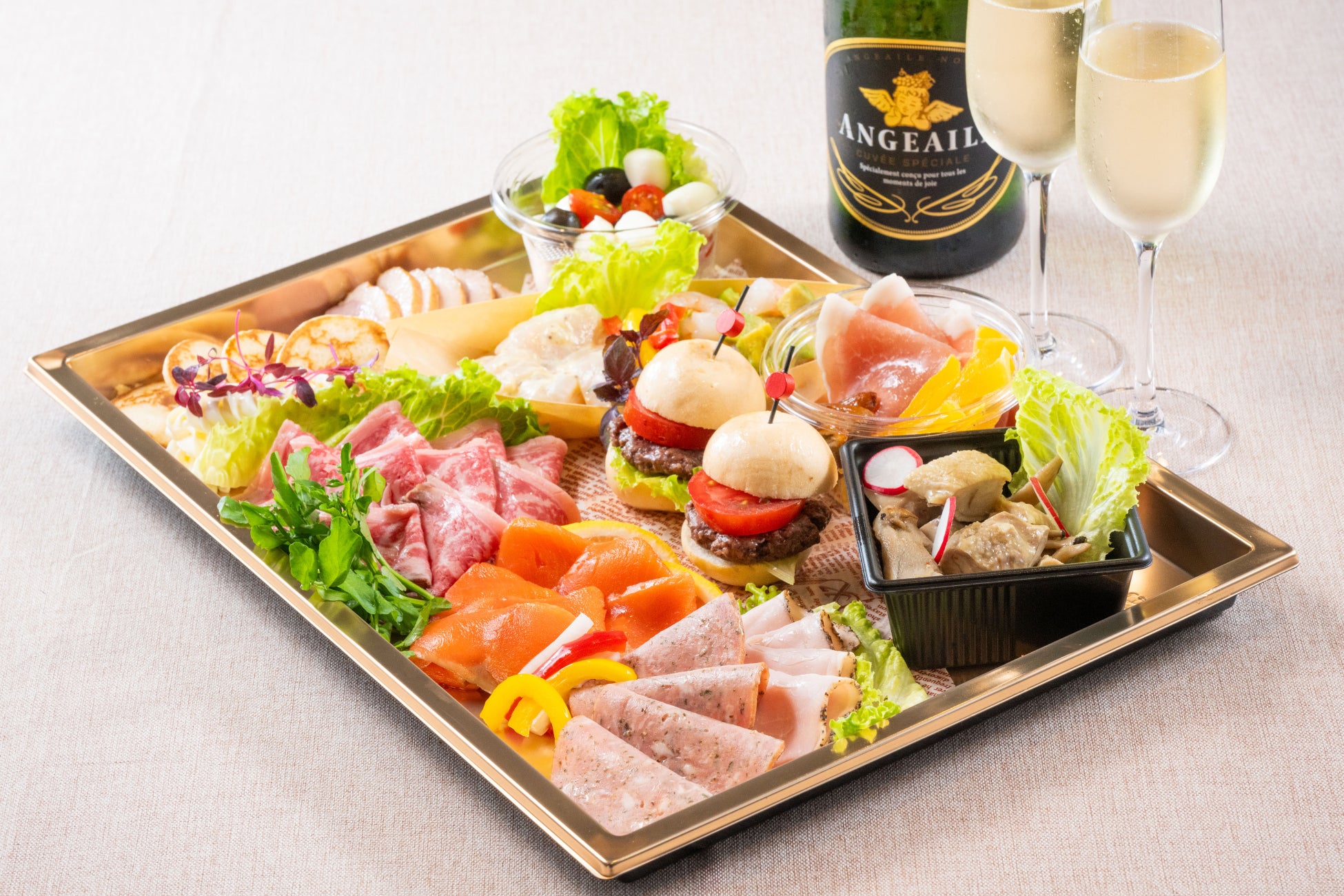 オードブル(4F「シャルロッテ」にて17:00~19:00にお渡し) スパークリングワインをお部屋にご用意 |