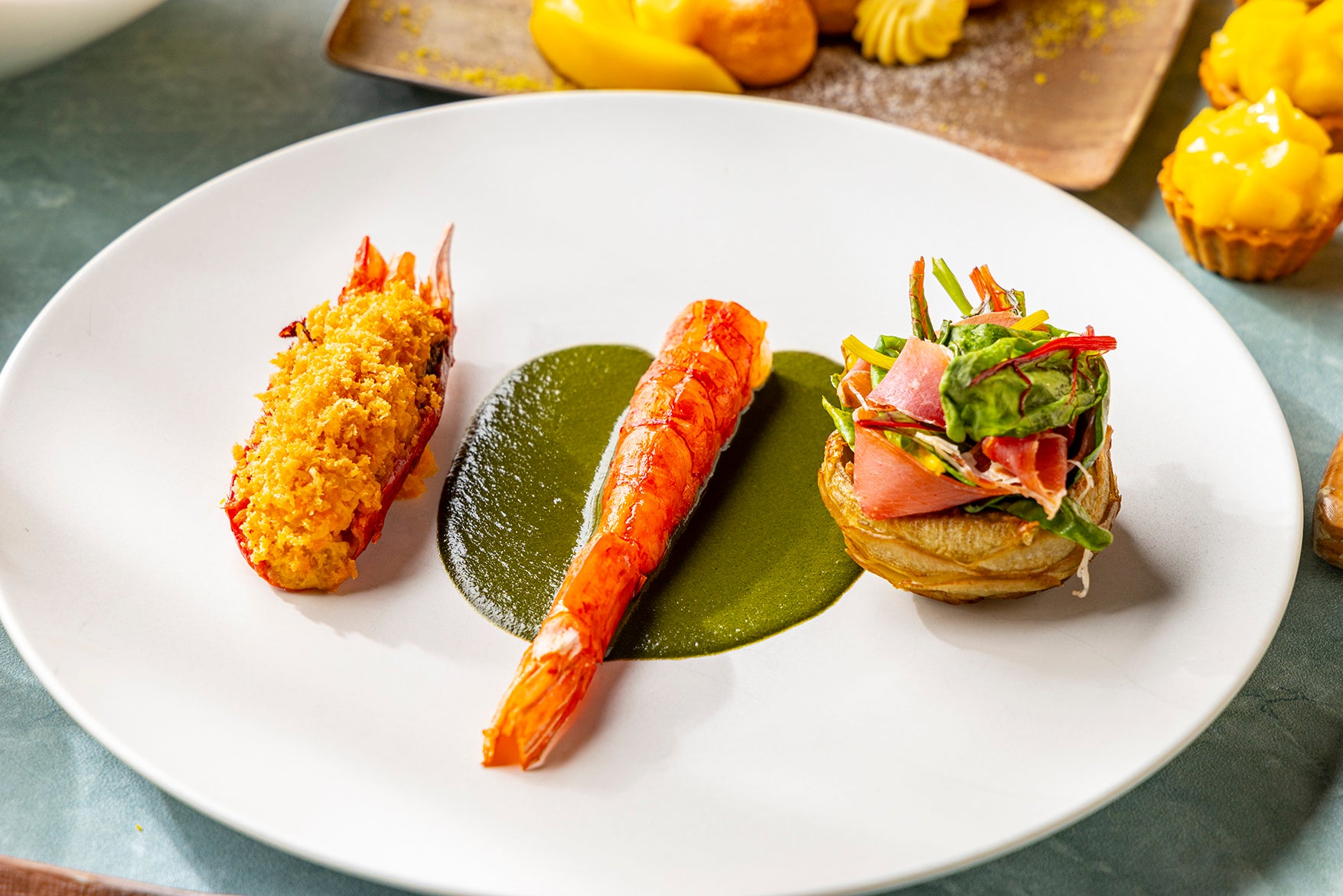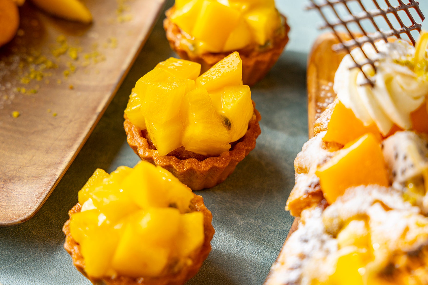 ドルチェには、マンゴーやパイナップル、ココナッツを使用したトロピカルスイーツが勢揃い。マンゴーショートケーキやココナッツムース、柑橘の爽やかさが広がるデザートなど、初夏にふさわしい軽やかで華やかな甘さをお楽しみいただけます。
