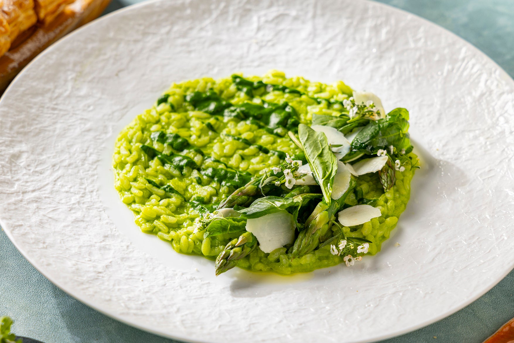 ・グリーンアスパラガスのリゾット リコッタチーズとルッコラ