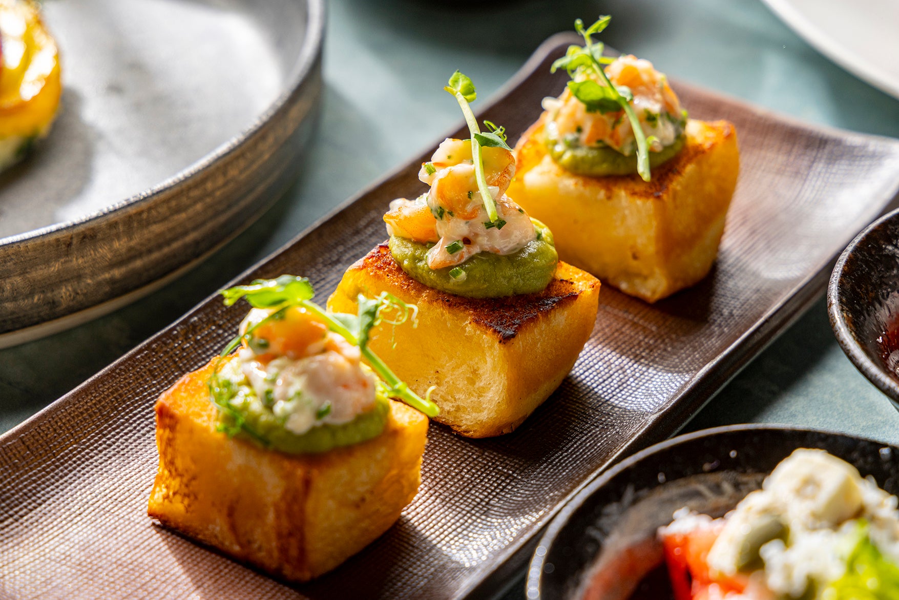 アンティパスティには、海老とオリーブのオルゾパスタサラダやスイカとフェタチーズのサラダ、カンパチのティラディート マンゴーとチリなど、地中海や南国のエッセンスを感じる多彩なメニューが並びます。