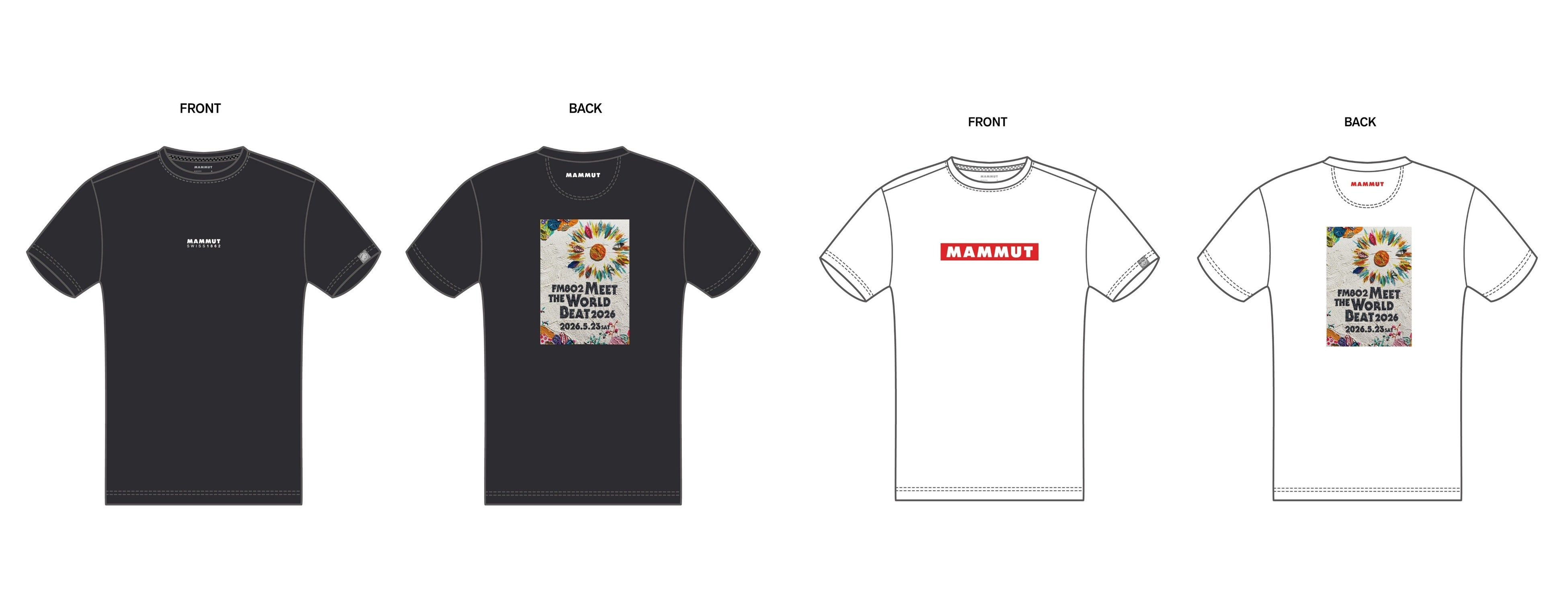 マムートは、万博記念公園で開催される野外音楽フェス「FM802 MEET THE WORLD BEAT 2026」において、フェス会場限定アイテム、およびストア先行販売アイテムとして、コラボレーションTシャツを展開します。