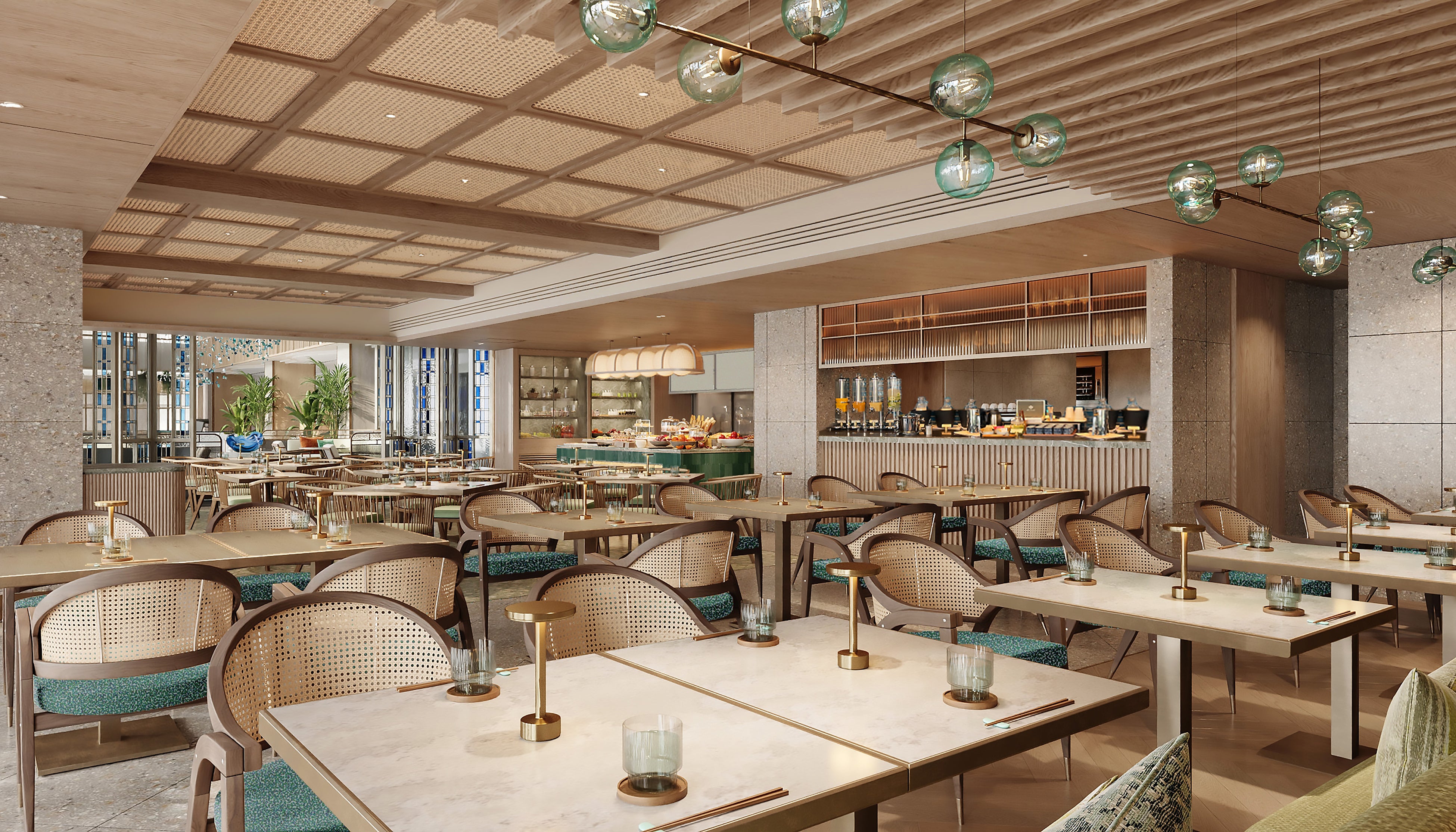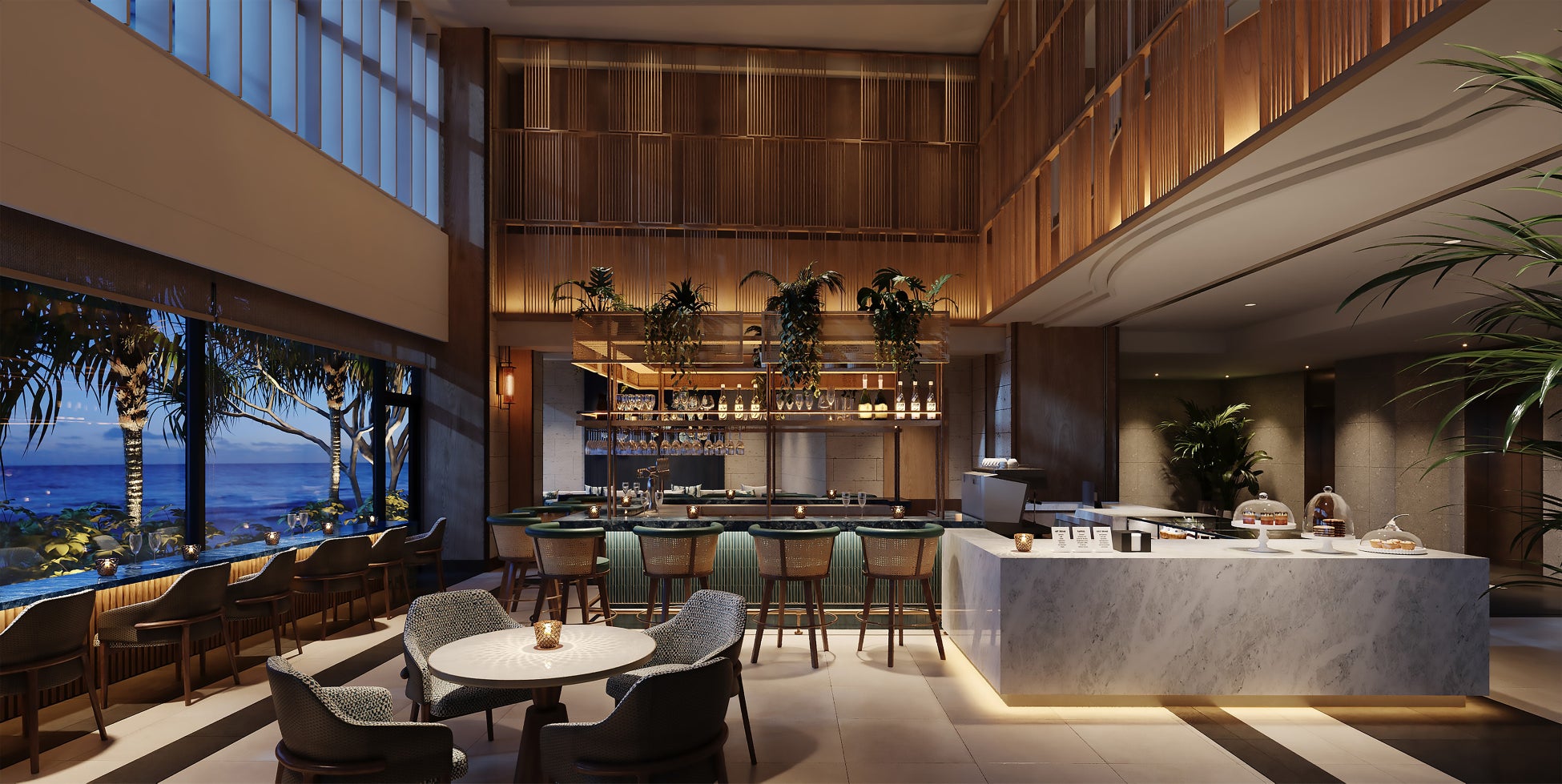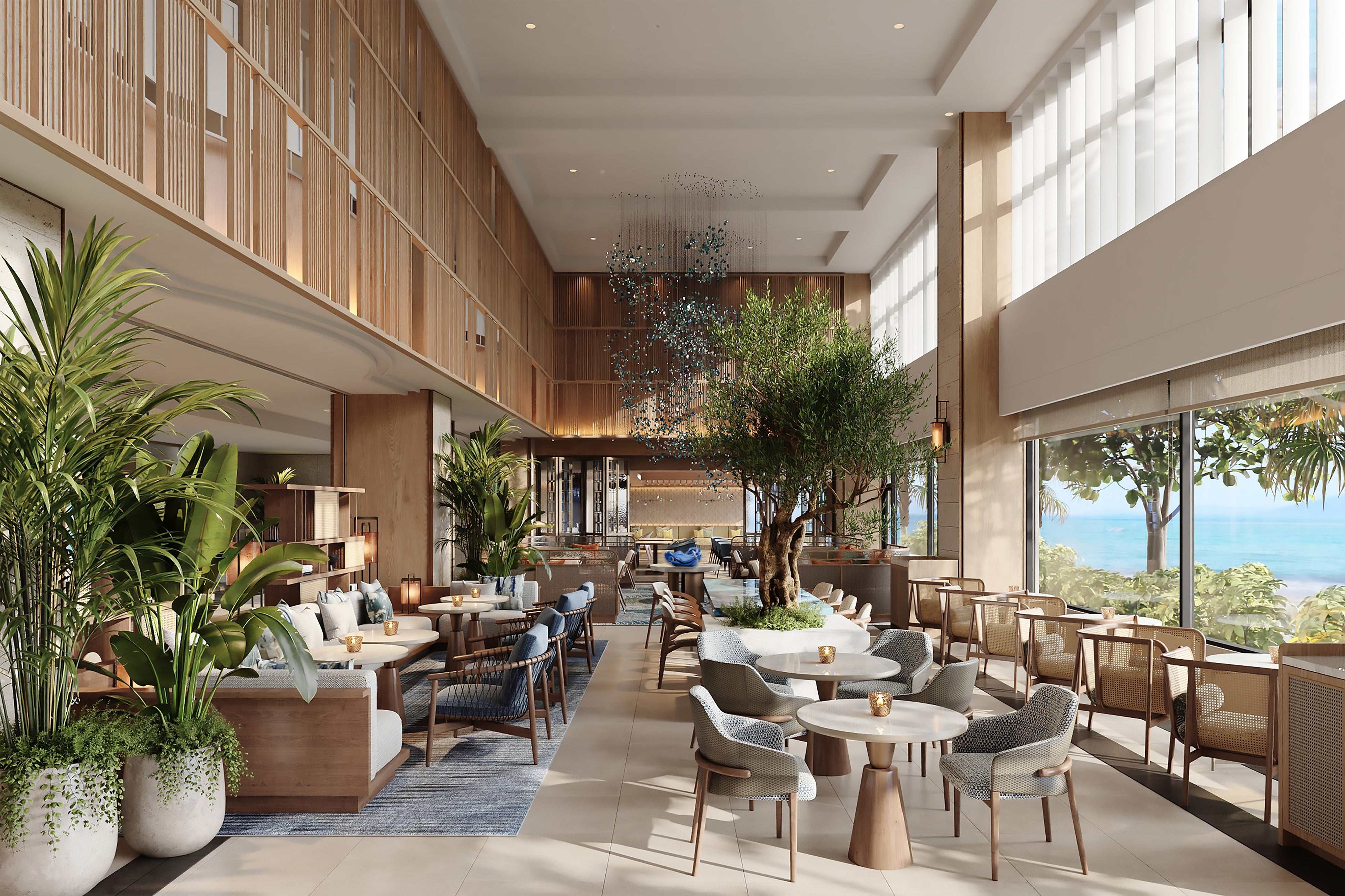 コンテンポラリーなデザインと沖縄のエッセンスが融合するリゾート感あふれる空間は、ご家族やご友人との語らいはもちろん、仕事やミーティング、お一人で過ごすのんびりとした時間まで、思い思いのスタイルで過ごす“リビングスペース”として多くの人に心地よいひと時をお届けいたします。