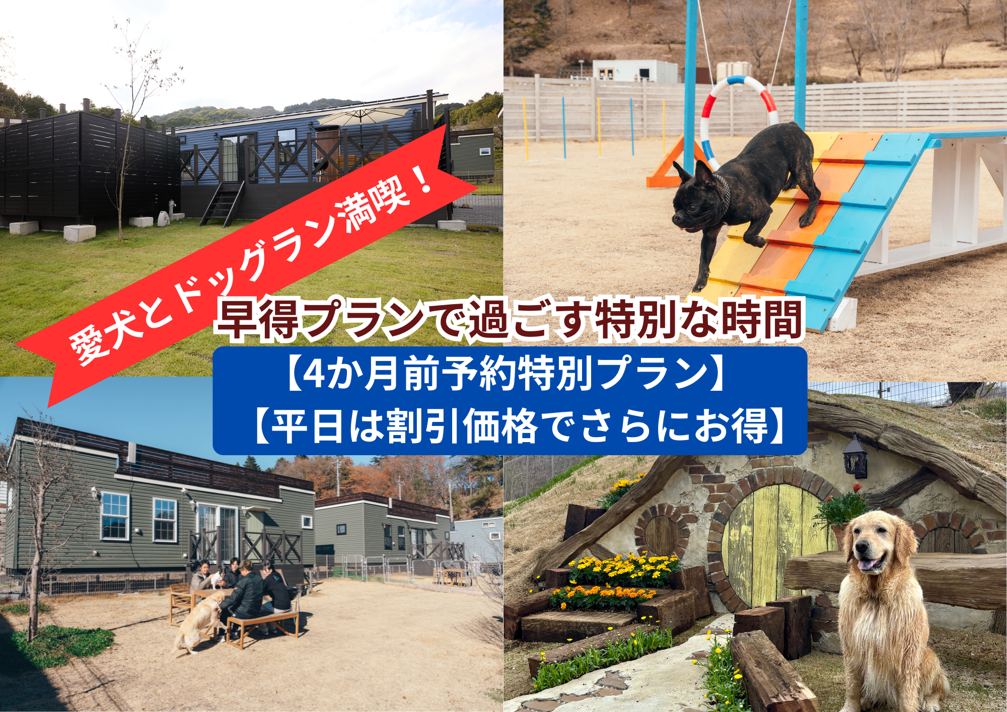 大型ドッグランオープンを記念して、早期宿泊予約キャンペーンとして4か月前にご予約のお客様限定のドッグラン利用券付&愛犬のおやつ付プランの販売を実施します。この機会にぜひ公式ホームページの早得プランからお申込みください。