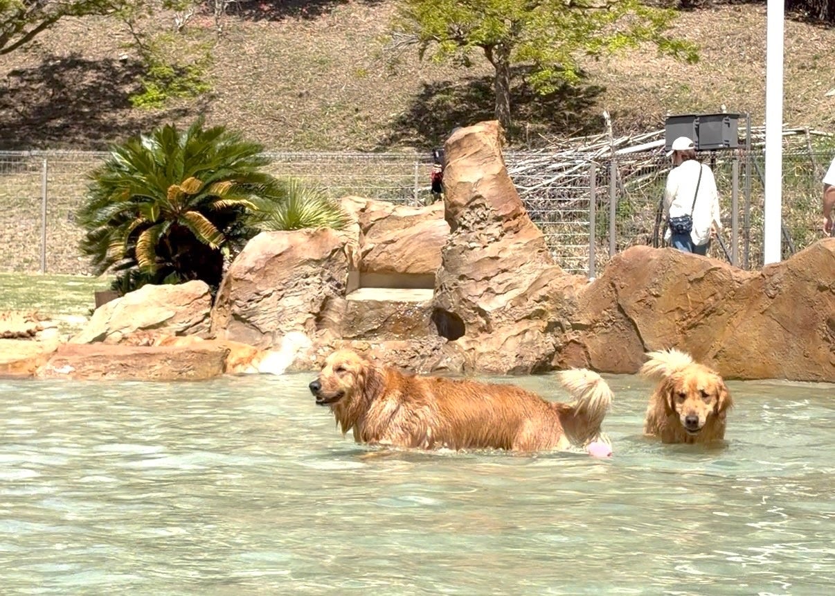 グランドオープンに先がけ4月11日に、新旧Ell’s Park 長瀞アンバサダー犬を迎え入れてプレオープンを実施いたしました。当日は傾斜のあるドッグランを思いきり走り回ってじゃれあうハスキーたちや、水遊びに夢中なゴールデンレトリーバーたちに飼い主様たちの笑顔がいっぱいでした。中でも普段は聞き分けの良い旧アンバサダー犬のハスキーが、まだ帰りたくない様子でプールから出てこなくなっていたのはとても印象的でした。