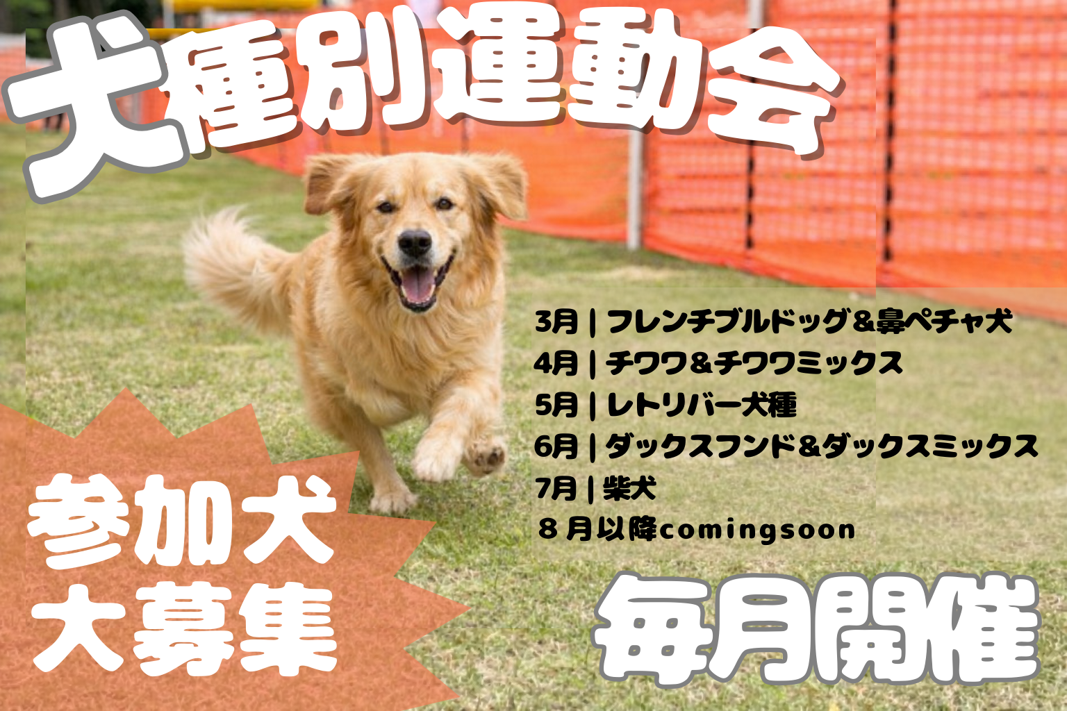 毎月同じ犬種同士の交流を目的とした犬種別運動会を開催しています。