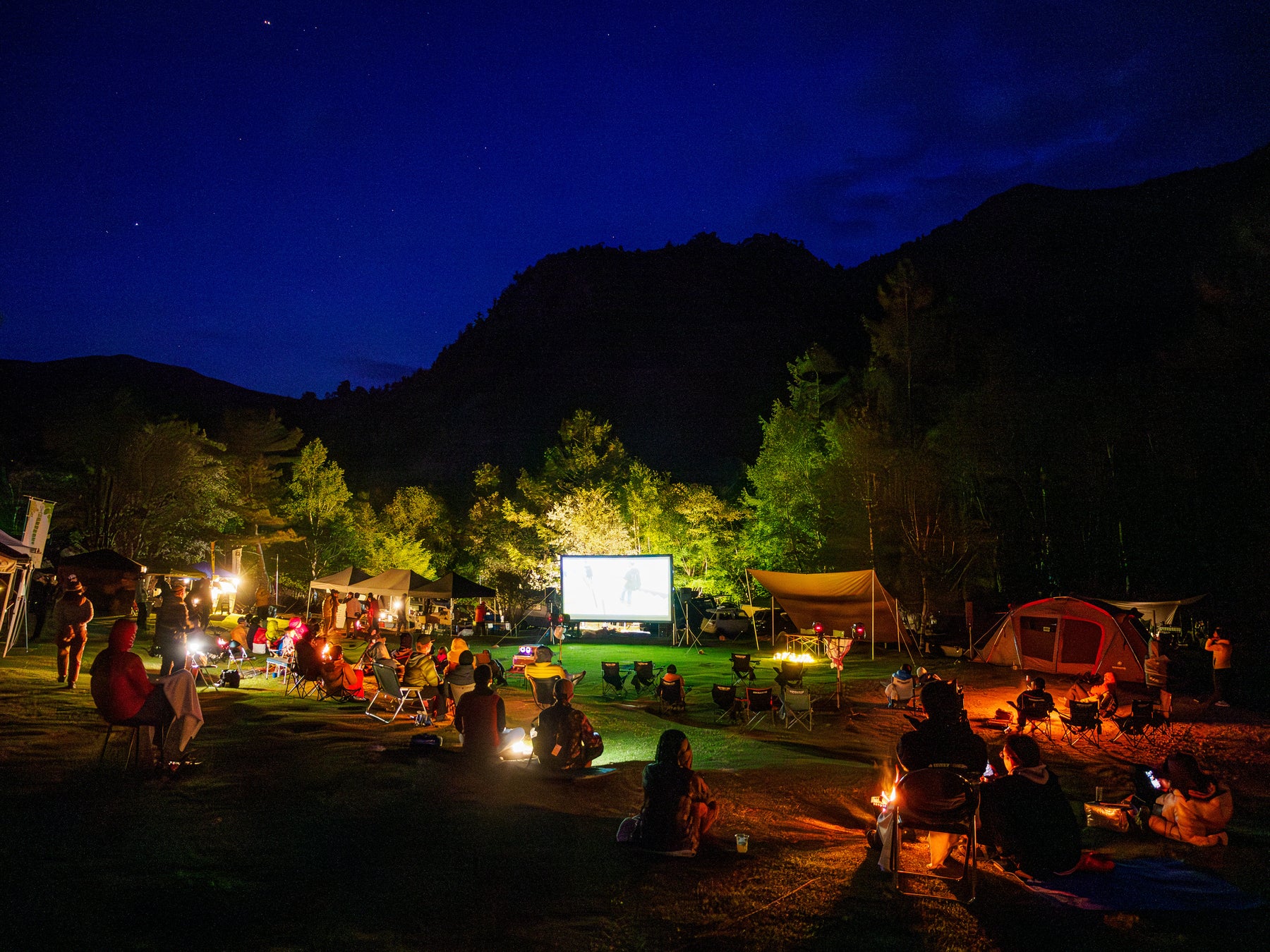 星空の下、焚き火を囲みトップクライマーによるトークショーやクライミング映画の上映会を実施。食事やお酒とともに、特別な夜の時間をお楽しみいただけます。