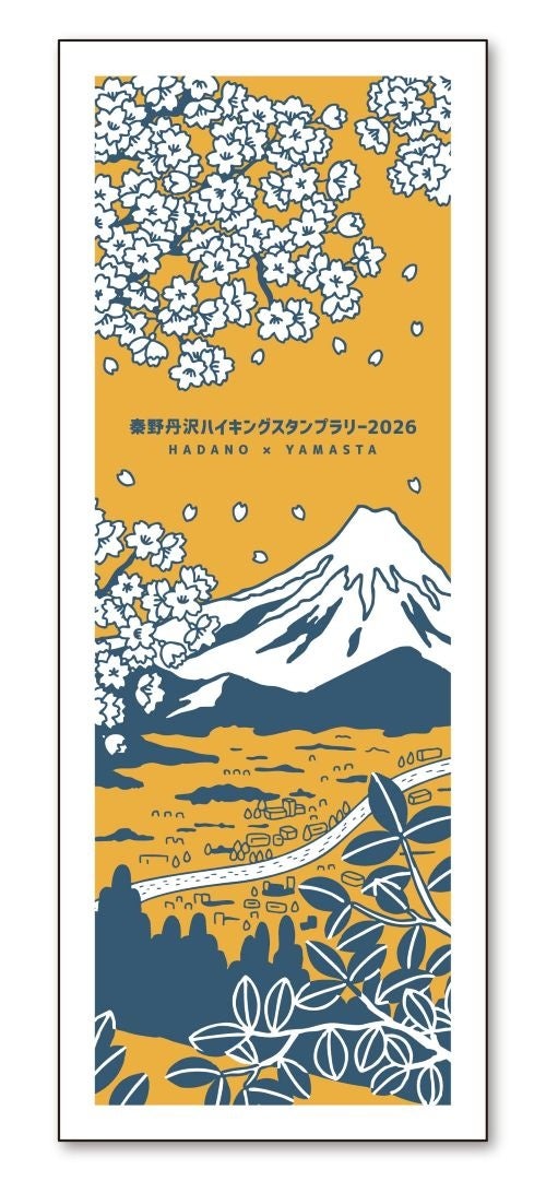 スタンプラリーを達成すると応募できる特典として、昨年好評を博した「特製手ぬぐい」が2026年度版の新デザインで今年も登場します。「関東の富士見百景」にも選ばれた権現山から望む富士山と秦野の街並みを描いた、飾って楽しめるタペストリー風のデザインです。スタンプを集めてぜひご応募ください。