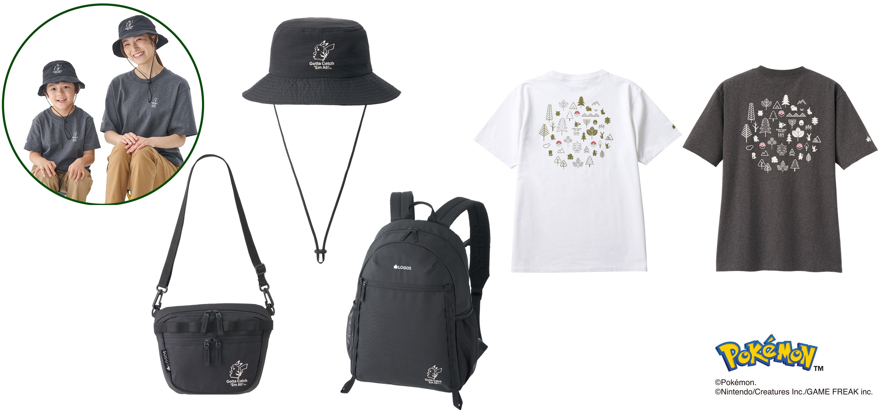 「ポケモン Tシャツ」「ポケモン KIDS Tシャツ」は、親子でお揃いを楽しめる、綿100%のサラッとした着心地のTシャツです。XS〜XLまでの幅広いサイズを展開しており、男女問わず着用できるユニセックス仕様です。前面にはワンポイント刺繍、背面には自然モチーフの中にポケモンたちのシルエットを散りばめたデザインを施しました。カラーはホワイトとチャコールの2色展開、キッズサイズも展開されているため、親子や家族でリンクコーデを楽しめます。