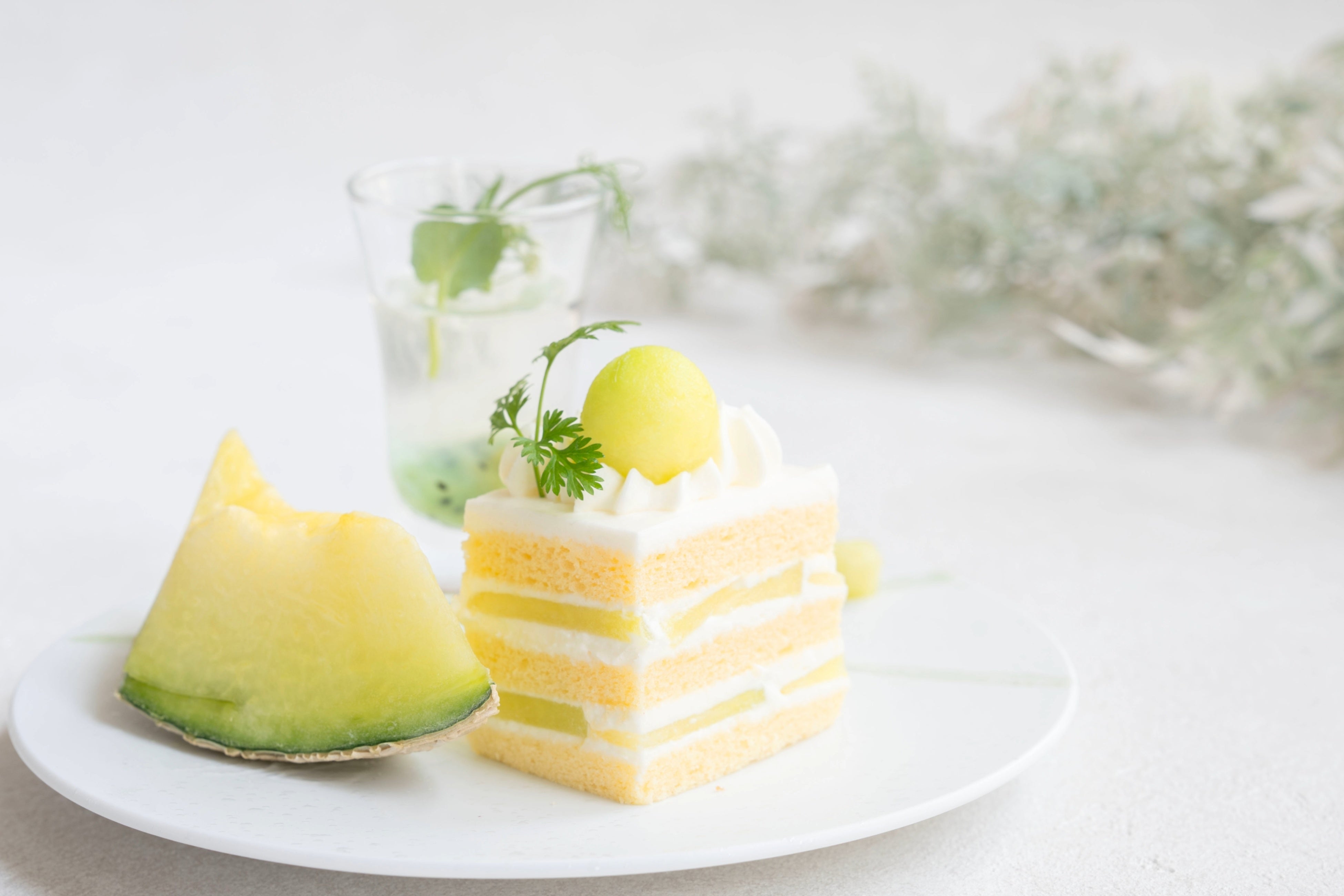 パティシエが丁寧に仕立て美しい層を成すショートケーキは、メロンの果汁がふわりと広がり、