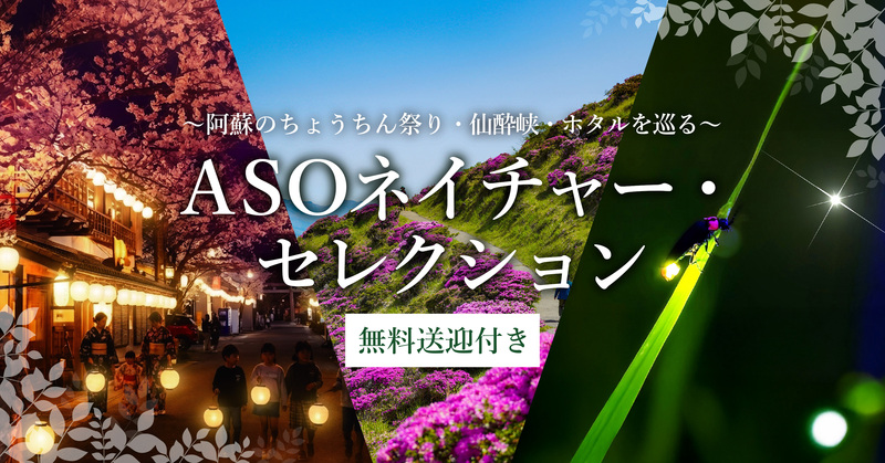 「ASOネイチャーセレクション」は、阿蘇に点在する自然や文化の魅力を、滞在中の時間を活かして気軽にお楽しみいただける無料送迎サービスとして企画しました。復興への想いを灯す阿蘇ちょうちん祭の門前町、約5万株のミヤマキリシマが咲き誇る仙酔峡、清らかな湧水に育まれたホタルが舞う霜宮農村公園など、阿蘇の自然と文化が色濃く息づくスポットを巡る3つのコースをご用意しています。これらはいずれも当ホテルからアクセス可能な立地にあり、地域に点在する魅力をつなぐことで実現しました。夕食後や朝食後のひとときに、無料送迎とスタッフの案内により、特別な準備や移動の負担なくご参加いただけます。
