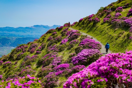 ■【仙酔峡のミヤマキリシマ】朝食後の感動体験。山肌を鮮やかに染めるピンクの絶景 阿蘇五岳
