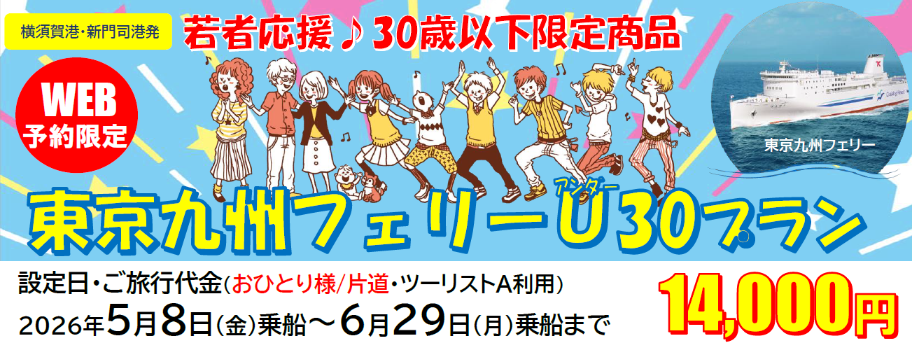 【新門司港発】30歳以下限定!船旅でGO!旅行にも帰省にも使える「東京九州フェリーU30プラン」5月・6月乗船発売!