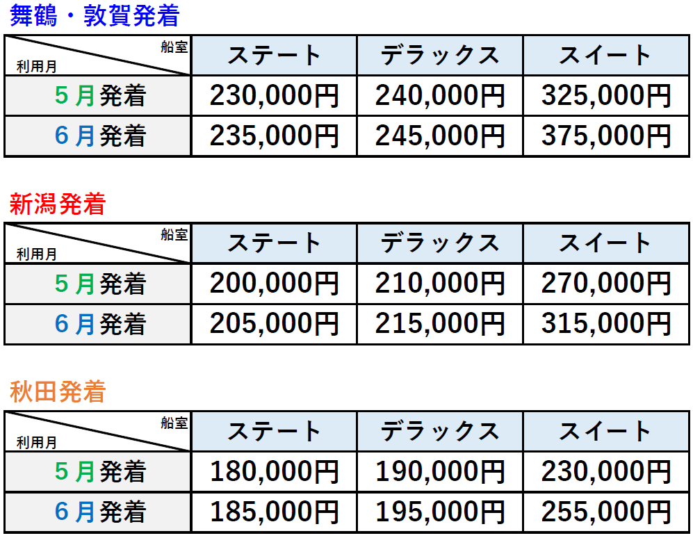 設定日/2026年5月7日出発~6月30日帰着まで(新潟・秋田航路は6月28日帰着まで)