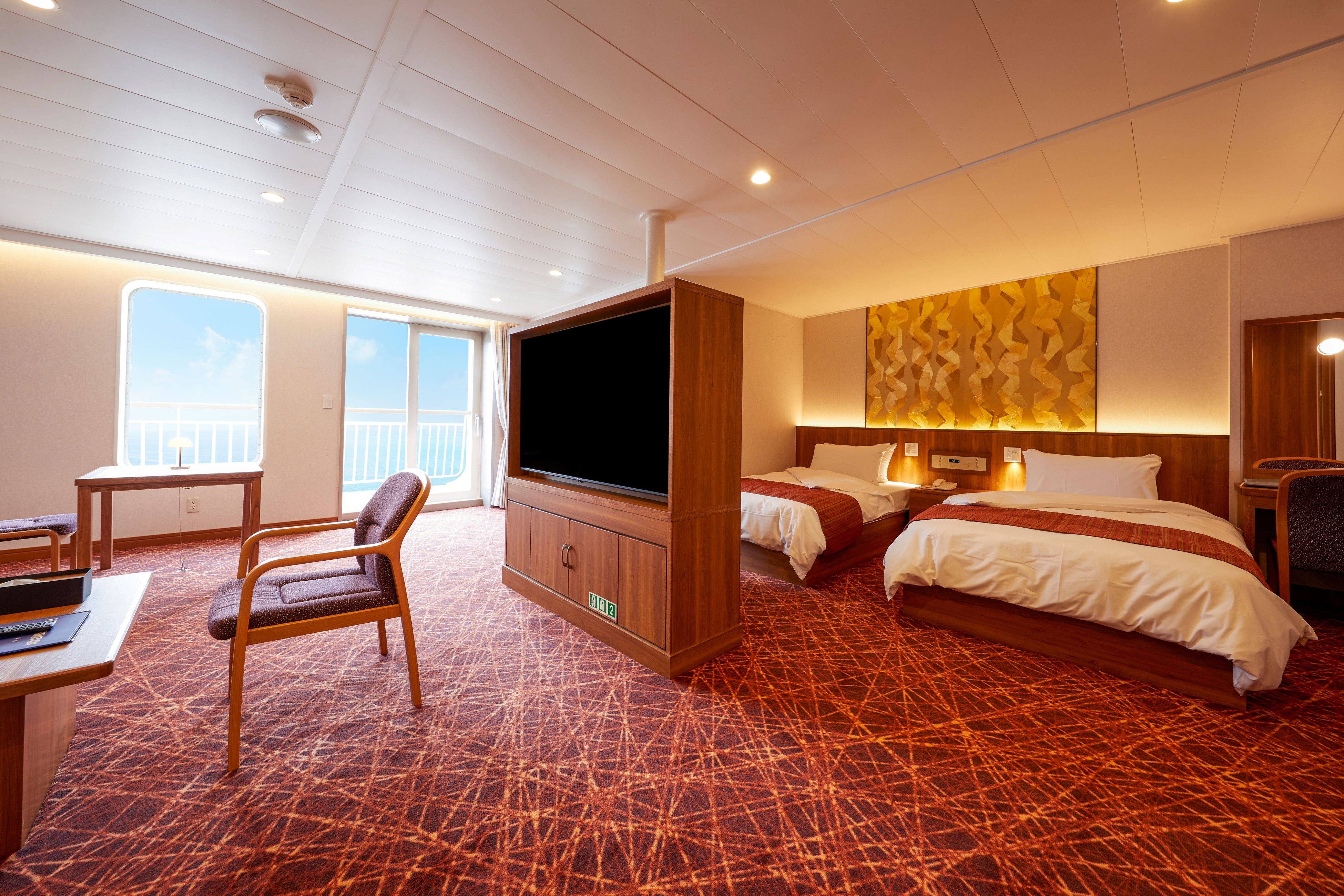 船内では、お寛ぎいただける個室船室をご用意。