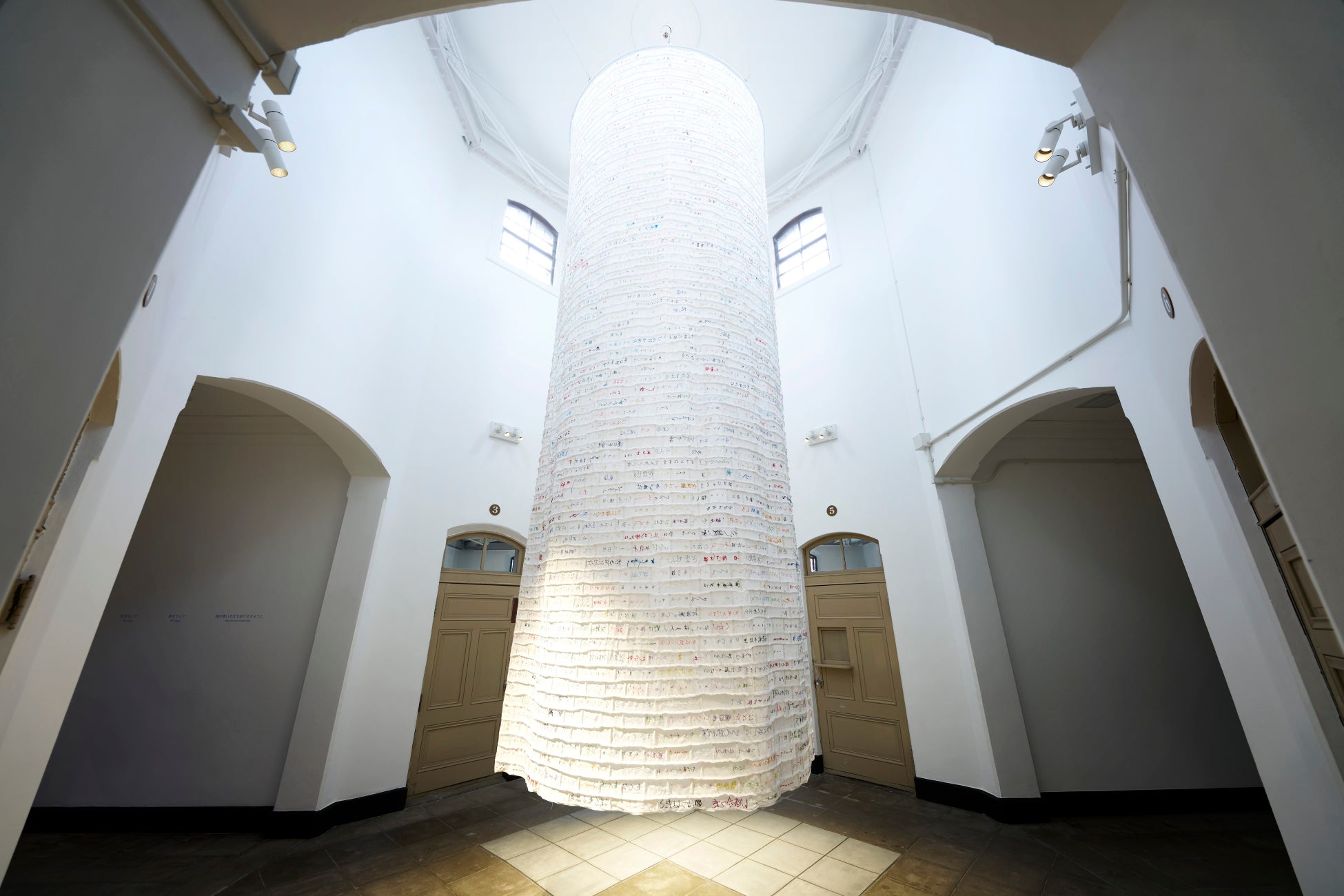ホンマエリとナブチによるアートユニット。来館者が抱く「人間の業(ごう)」や「罪と罰」への思索を深め、心を遠くへといざなう時空を創造。かつて医務室だった場所を、静かな祈りで満たしました。