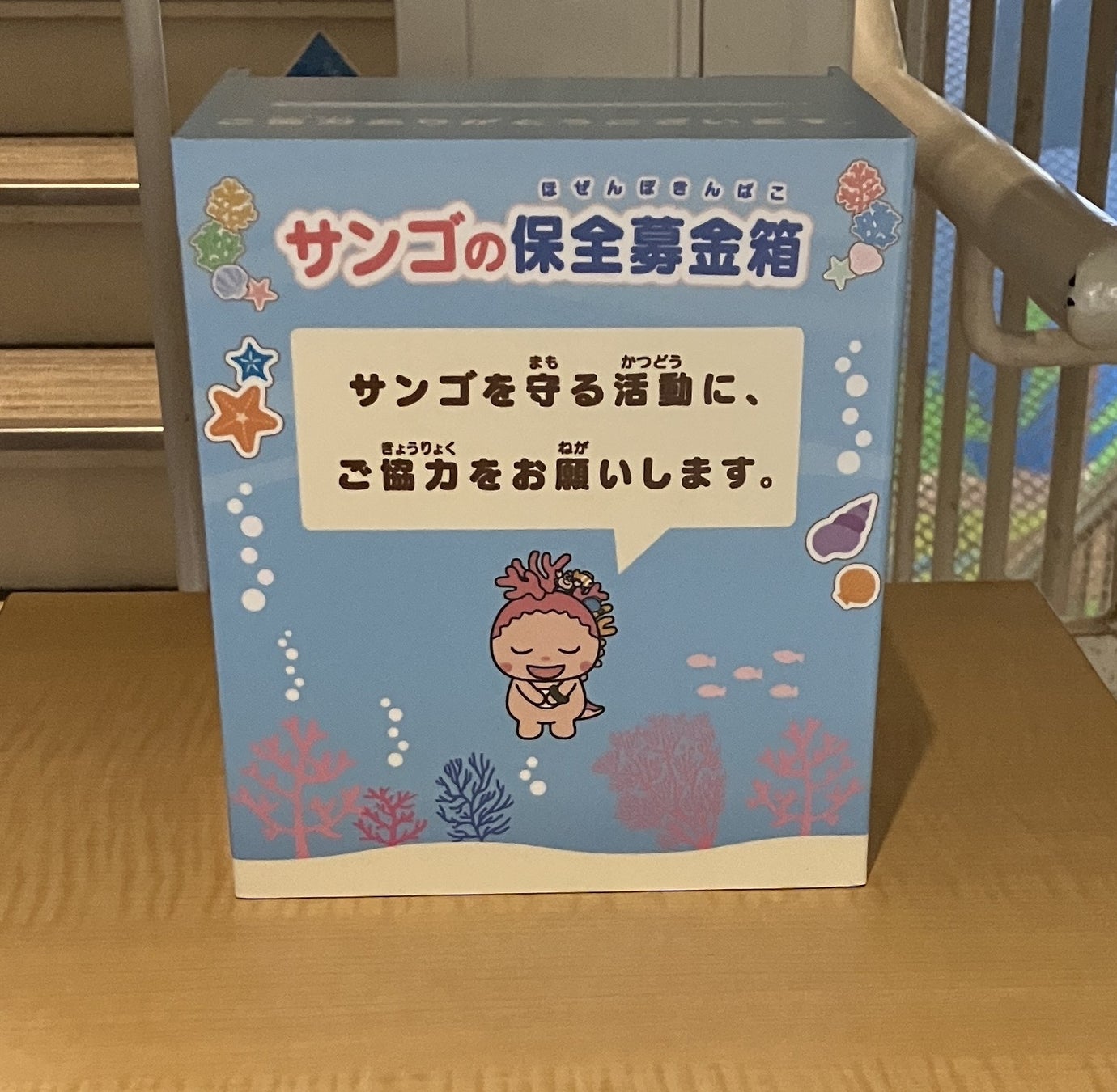 サンゴプロジェクト20周年を記念して、サンゴ保全につながる募金箱を設置。集まった募金は、「サンゴの村宣言」をしている沖縄県恩納村に寄付され、サンゴの植え付けやサンゴの健康チェック、ビーチクリーンなどの活動に使用されます。