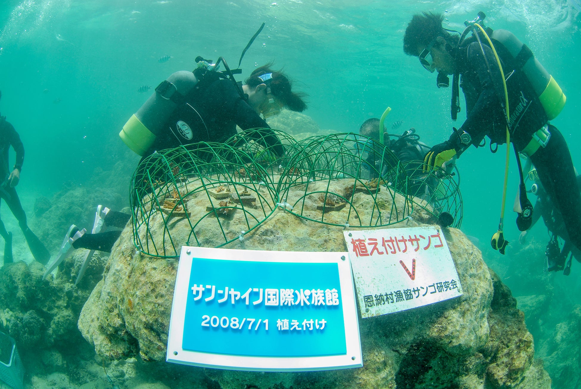 サンシャイン水族館育ちのサンゴを 初めて恩納村へ返還しました。