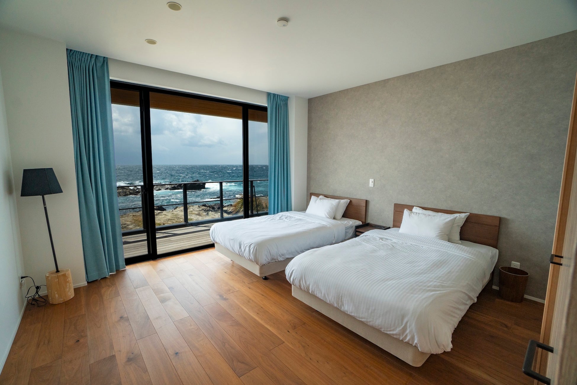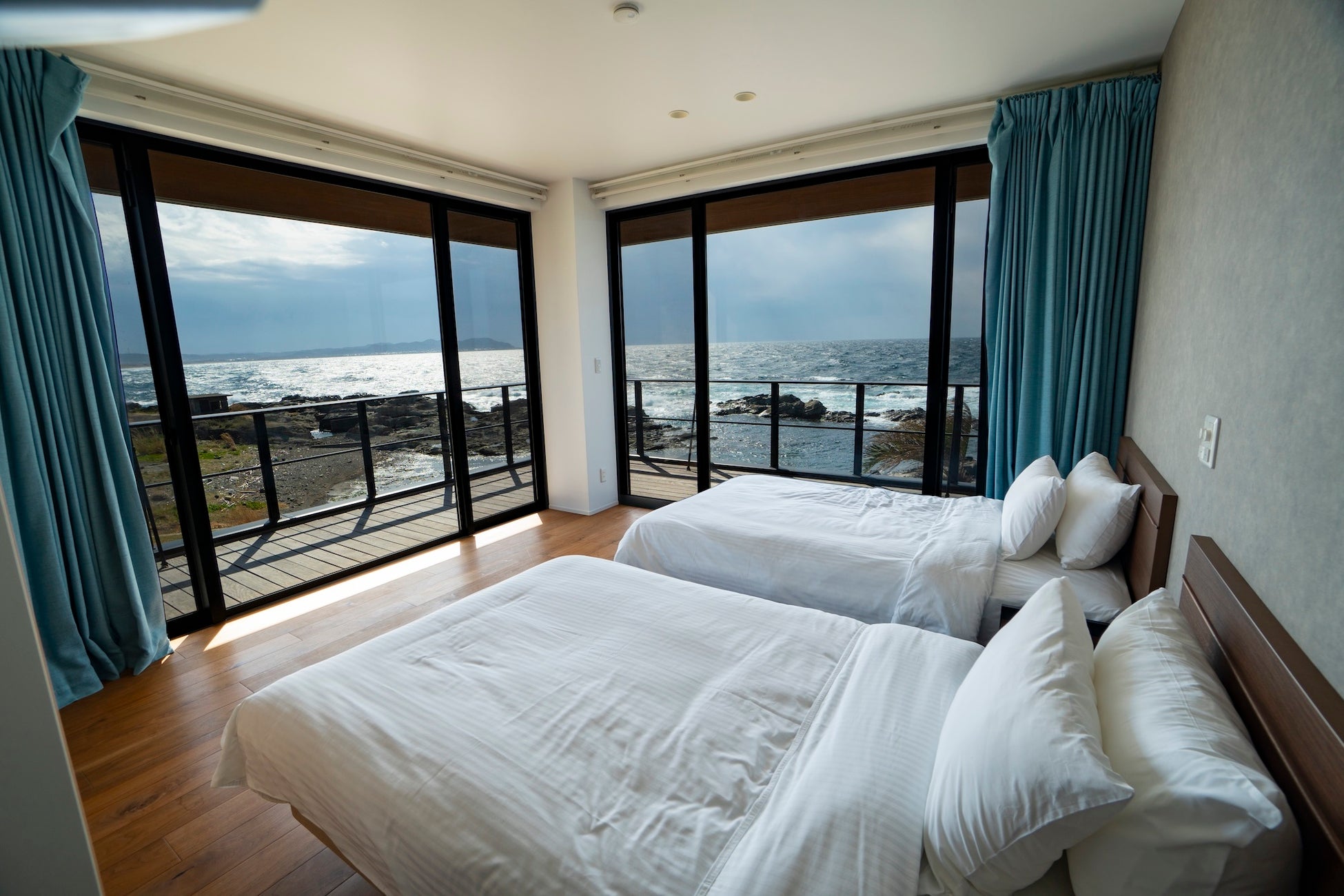 窓を閉めていても聞こえる心地よい波の音が、日頃の疲れを癒し深い眠りへと導きます。