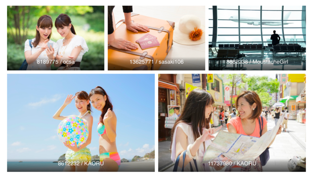 売れ筋の大半は、南国のビーチや海外有名観光スポットなど「人の写らない風景写真」でした。当時の国内ストックフォト市場では、日本人モデルを使った人物素材が少なく、入手するには海外サービスを利用するか高額な費用がかかるのが一般的でした。PIXTAはその空白を埋めるべく、2009〜2010年頃から人物素材の拡充に注力。以降、登録数は急激に増加していきます。また、スマートフォン普及前夜のこの頃は、旅行代理店でパッケージツアーを申し込むのが主流。憧れの遠い場所へ行くこと自体がステータスであったため、広告素材にも非日常感のある純粋な絶景が求められていたと見られます。