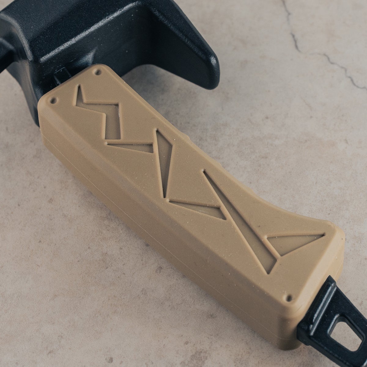 ハンマーヘッドと持ち手が近い構造でも振動が手に伝わりにくいよう、握りやすく滑りにくいシリコングリップを採用。内部ボルトはロック構造とし、不意にグリップが抜けることを防ぐ。