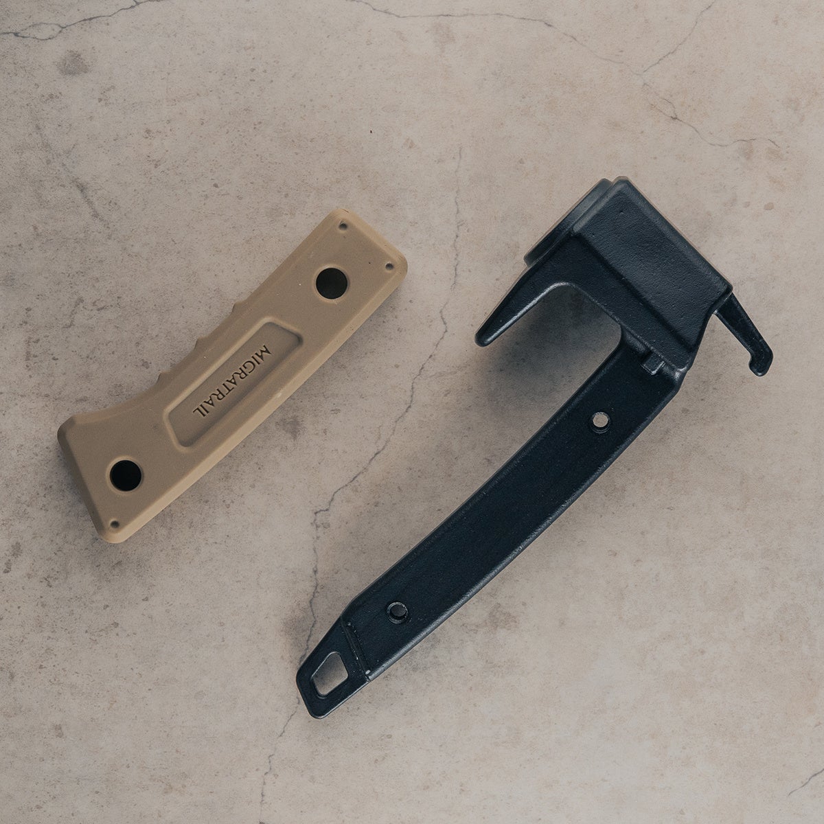 メインはフルタングのハンマーヘッドとグリップの2部品で構成されており、部品構成が少ないので破損のリスクや、長く使用している時に起こる各部のガタツキなどの心配がない。ペグを簡単に抜くことができる、ペグ抜きフックを装備。グリップエンドの穴に好みのパラコードを結べば、ハンガーフックにしたり、使用時の抜け防止のループとして使用できる。