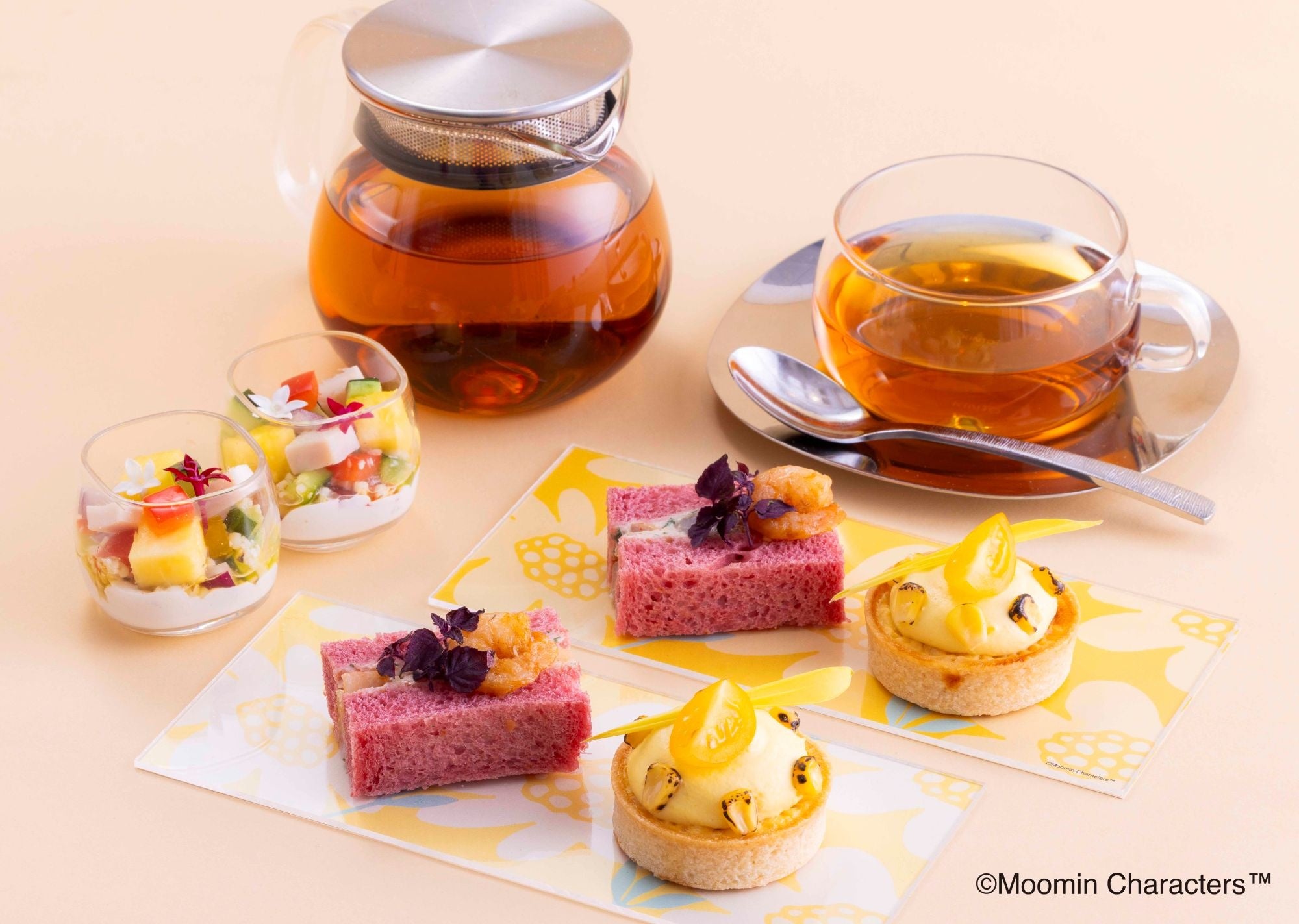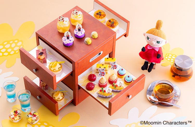 また、1F「MYPLACE(マイプレイス)」 カフェ&バーでは、リトルミイのサマーアフタヌーンティーを同時開催いたします。「赤い服の水まんじゅう」や「リトルミイの白桃タルト」など、リトルミイを中心に、昨年よりもさらに「ムーミン」のキャラクターを見た目に打ち出した可愛らしいスイーツが引き出しを開けるごとに登場する充実のセットです。