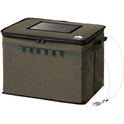 製品名 : LOGOS置き配用クーラーボックス 価格 : ¥11,800(税込) 総重量 :(約)2.1kg サイズ :(約)幅50×マチ幅37×高さ39cm 内寸 :(約)幅45×奥行35×深さ35cm 容量 :(約)55L収納サイズ:(約)幅50×奥行37×厚さ12cm 構成 : 本体、ダイヤル錠×2、ワイヤー 主素材 : ポリエステル、ターポリン、PU、PEVA、PP |