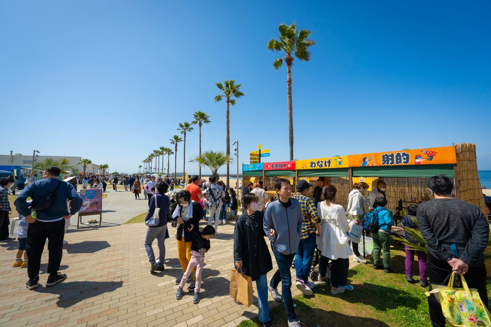 会場となる海辺エリア一帯には、色とりどりの鯉のぼり約200匹が空を彩り、空と海を背景にダイナミックな景観が広がります。春の風を受けて一斉に泳ぐ姿は迫力があり、訪れる方々に季節感あふれるひとときを提供します。
